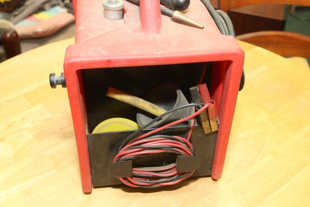 Items include automotive magazines & literature incl "Hot Rod" magazine, "Rod Action", "Truckin' ", etc.; Skat Blast sand blaster; license plates; exhaust piping/hoses/brackets, etc.; ball joint kits; camshafts/sockets/fittings; tap & dies; transmissions; manifolds; carburetors; headlights; fenders & doors; wheels; chrome bumpers; gas tanks; seats/seat frames; wheel covers; mufflers; brake drums; bolts of interior fabric; Kellogg-American air compressor; AC compressors; steering components; body panels; hoods; riding lawn mowers; axles; starters; walk behind push mowers and more. Items located in Ringoes, NJ.