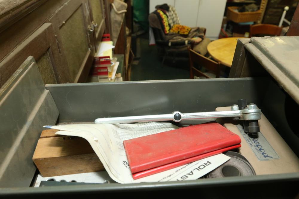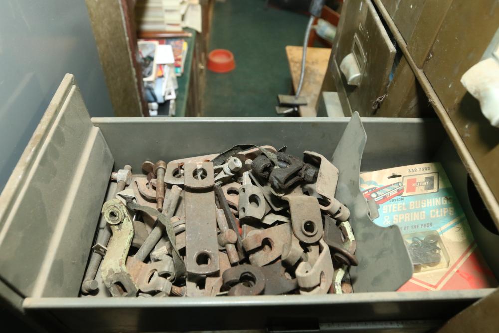 Items include automotive magazines & literature incl "Hot Rod" magazine, "Rod Action", "Truckin' ", etc.; Skat Blast sand blaster; license plates; exhaust piping/hoses/brackets, etc.; ball joint kits; camshafts/sockets/fittings; tap & dies; transmissions; manifolds; carburetors; headlights; fenders & doors; wheels; chrome bumpers; gas tanks; seats/seat frames; wheel covers; mufflers; brake drums; bolts of interior fabric; Kellogg-American air compressor; AC compressors; steering components; body panels; hoods; riding lawn mowers; axles; starters; walk behind push mowers and more. Items located in Ringoes, NJ.