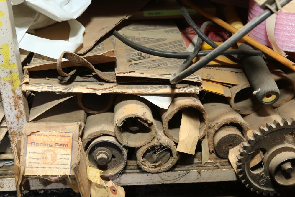 Items include automotive magazines & literature incl "Hot Rod" magazine, "Rod Action", "Truckin' ", etc.; Skat Blast sand blaster; license plates; exhaust piping/hoses/brackets, etc.; ball joint kits; camshafts/sockets/fittings; tap & dies; transmissions; manifolds; carburetors; headlights; fenders & doors; wheels; chrome bumpers; gas tanks; seats/seat frames; wheel covers; mufflers; brake drums; bolts of interior fabric; Kellogg-American air compressor; AC compressors; steering components; body panels; hoods; riding lawn mowers; axles; starters; walk behind push mowers and more. Items located in Ringoes, NJ.