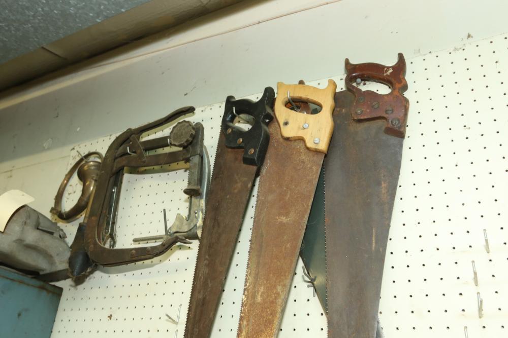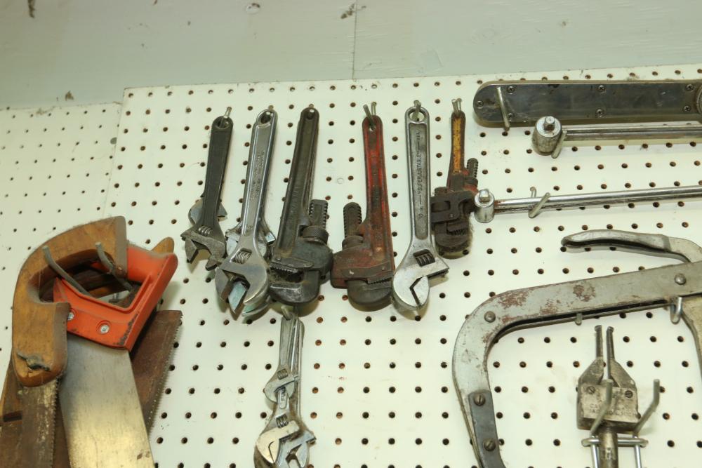 Hand tools incl saws, torque wrench, adjustable wrenches, slap hammers, pipe threaders, crow bar, wrenches, etc.