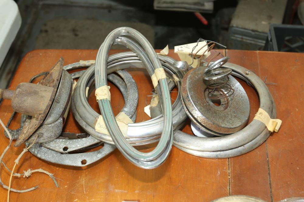 Items include automotive magazines & literature incl "Hot Rod" magazine, "Rod Action", "Truckin' ", etc.; Skat Blast sand blaster; license plates; exhaust piping/hoses/brackets, etc.; ball joint kits; camshafts/sockets/fittings; tap & dies; transmissions; manifolds; carburetors; headlights; fenders & doors; wheels; chrome bumpers; gas tanks; seats/seat frames; wheel covers; mufflers; brake drums; bolts of interior fabric; Kellogg-American air compressor; AC compressors; steering components; body panels; hoods; riding lawn mowers; axles; starters; walk behind push mowers and more. Items located in Ringoes, NJ.