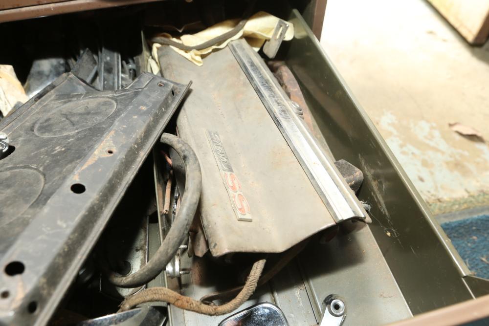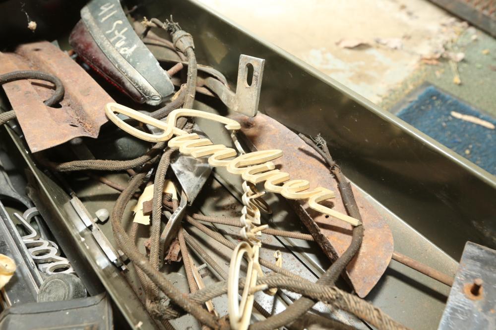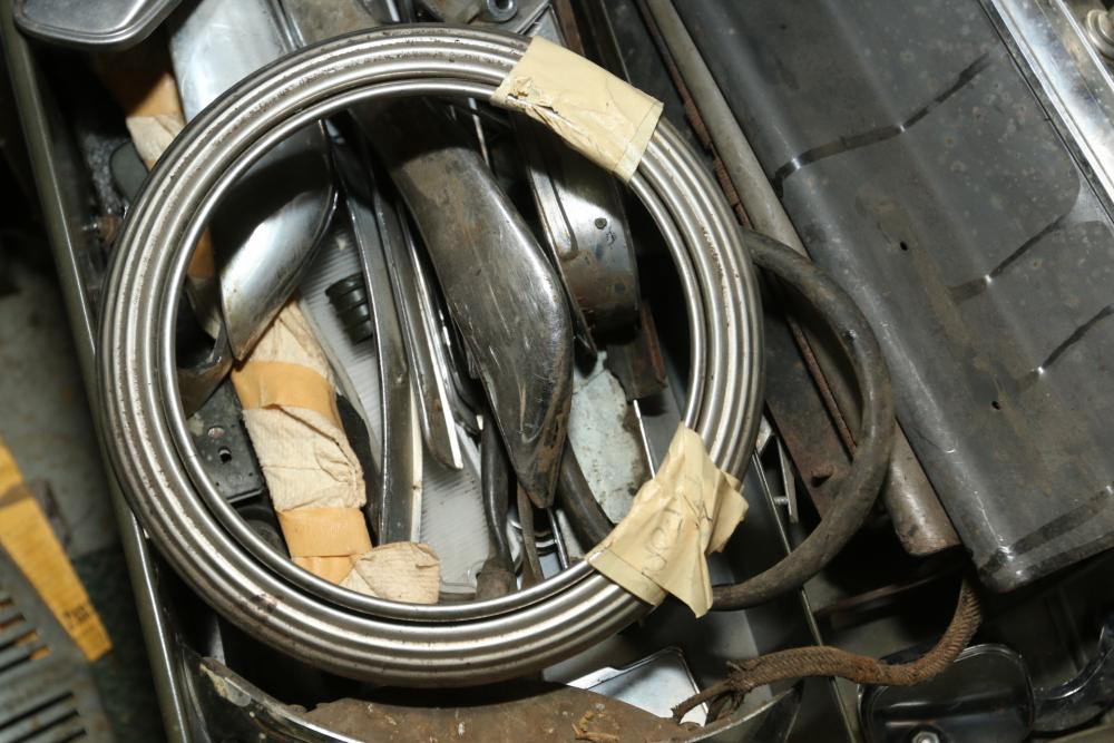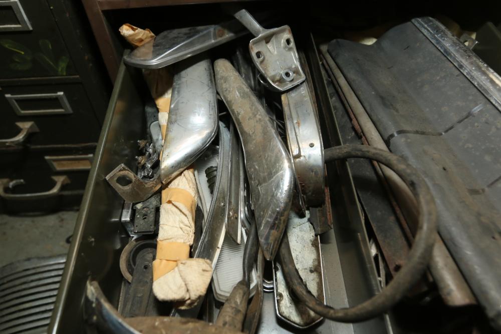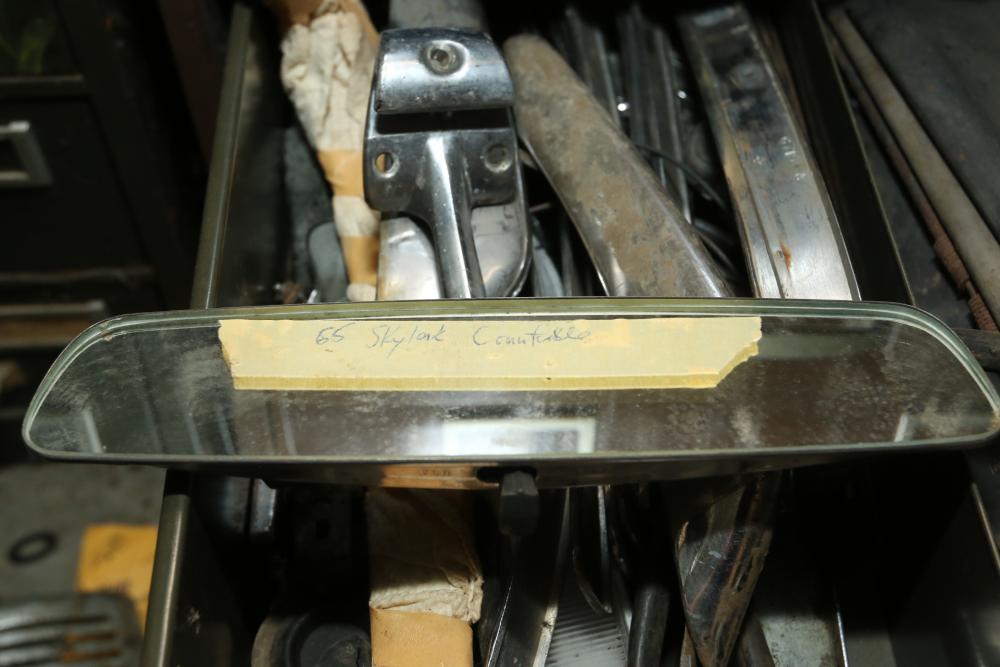 Rear view mirror for 1965 Buick Skylark, chrome hood ornaments, Impala SS glove box door, emblems, etc.