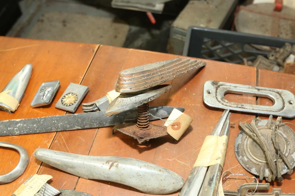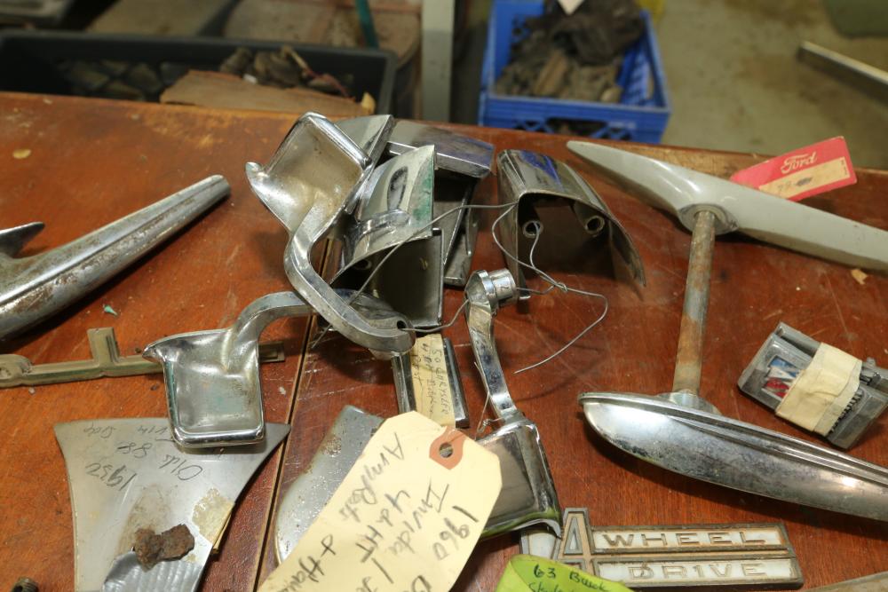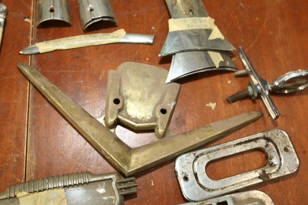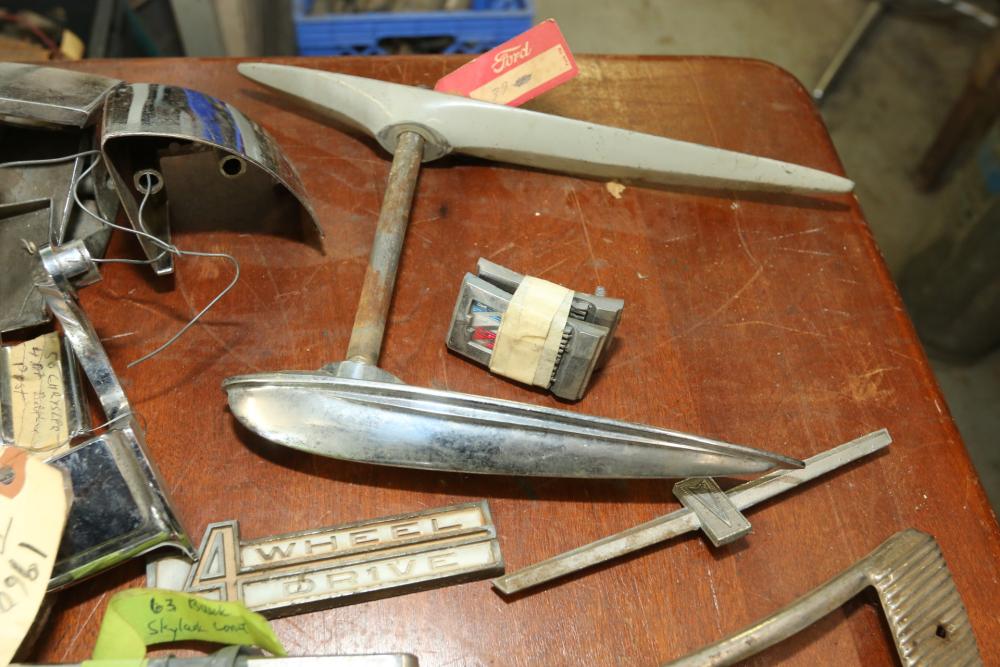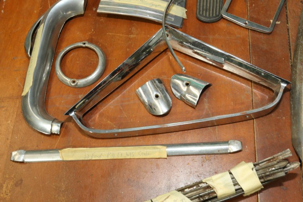 Items include automotive magazines & literature incl "Hot Rod" magazine, "Rod Action", "Truckin' ", etc.; Skat Blast sand blaster; license plates; exhaust piping/hoses/brackets, etc.; ball joint kits; camshafts/sockets/fittings; tap & dies; transmissions; manifolds; carburetors; headlights; fenders & doors; wheels; chrome bumpers; gas tanks; seats/seat frames; wheel covers; mufflers; brake drums; bolts of interior fabric; Kellogg-American air compressor; AC compressors; steering components; body panels; hoods; riding lawn mowers; axles; starters; walk behind push mowers and more. Items located in Ringoes, NJ.