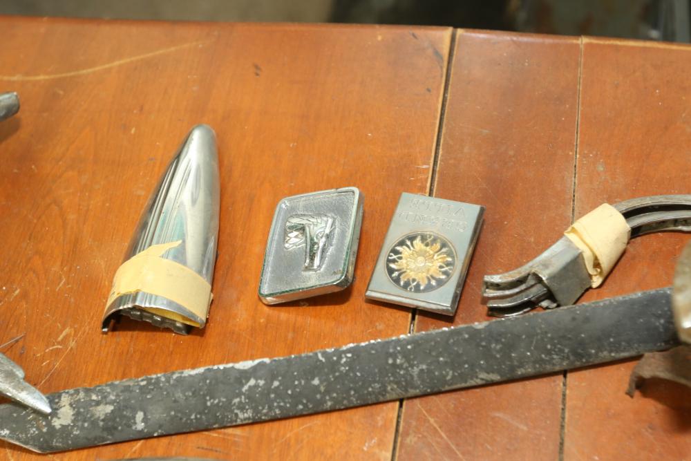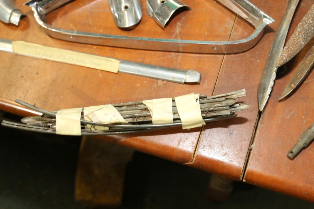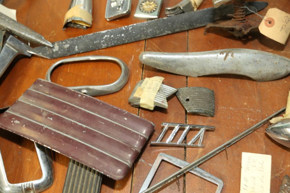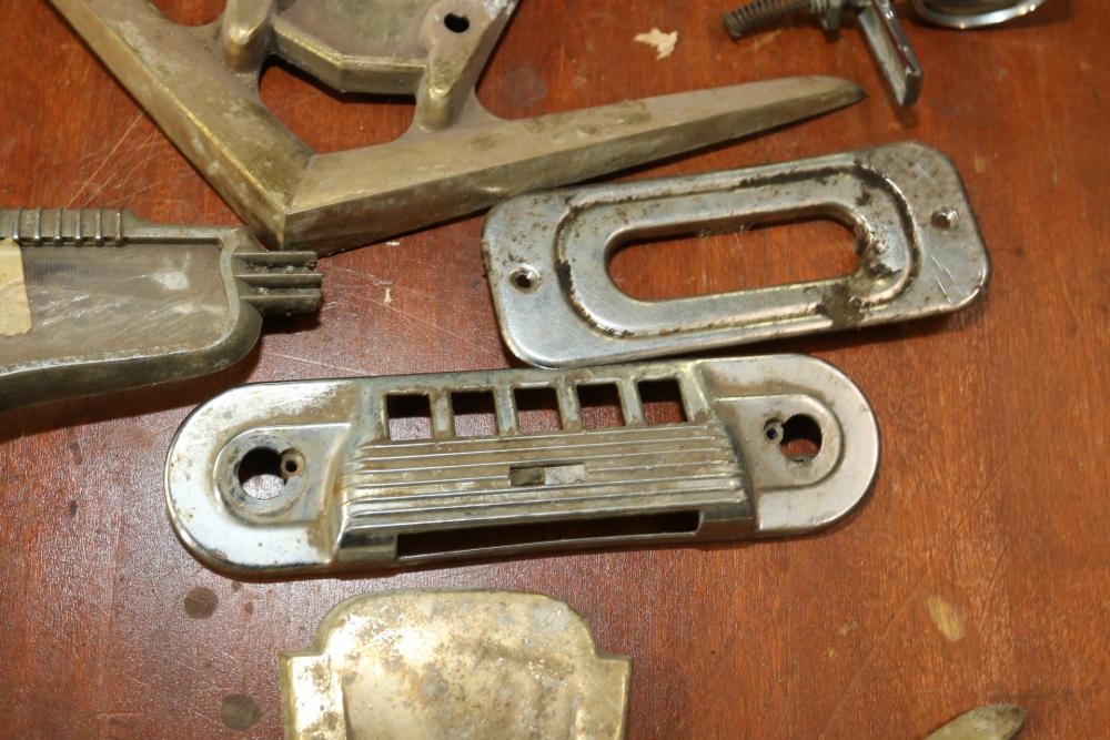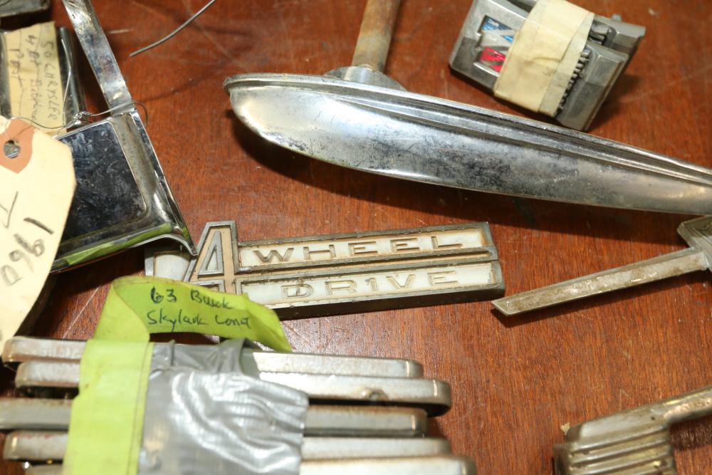 Items include automotive magazines & literature incl "Hot Rod" magazine, "Rod Action", "Truckin' ", etc.; Skat Blast sand blaster; license plates; exhaust piping/hoses/brackets, etc.; ball joint kits; camshafts/sockets/fittings; tap & dies; transmissions; manifolds; carburetors; headlights; fenders & doors; wheels; chrome bumpers; gas tanks; seats/seat frames; wheel covers; mufflers; brake drums; bolts of interior fabric; Kellogg-American air compressor; AC compressors; steering components; body panels; hoods; riding lawn mowers; axles; starters; walk behind push mowers and more. Items located in Ringoes, NJ.
