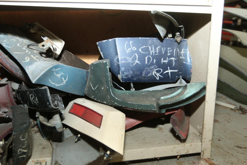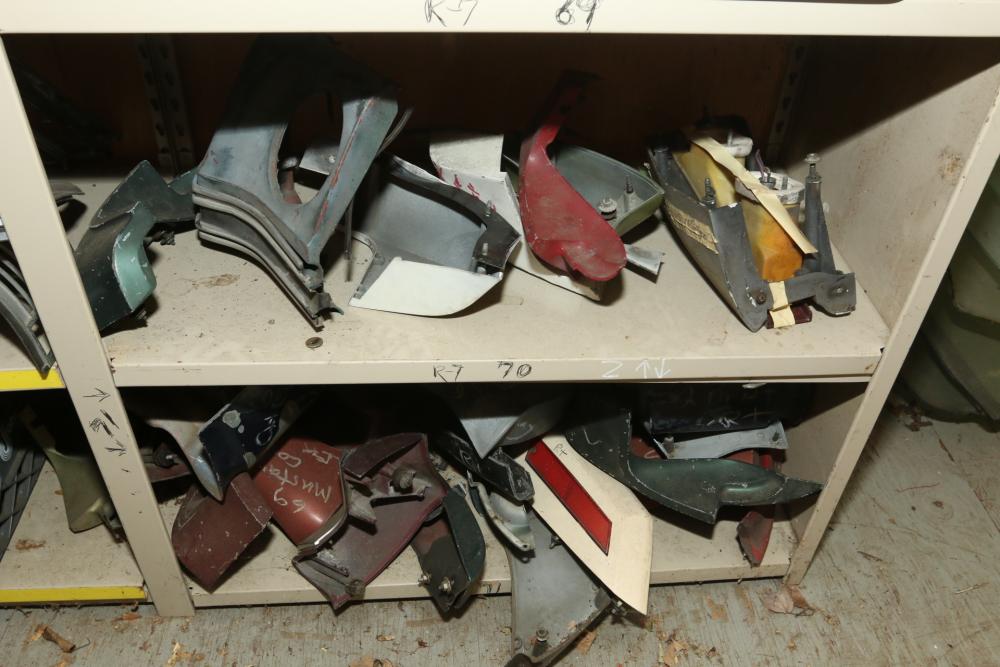 Assortment of body components for vehicles incl 1968 Mustang, 1971 Buick, 1966 Chevelle, 1969 Mustang, etc. Located on the second floor of the second building, there is a ramp walkway on both ends. There are low ceilings other than the main walkway. You must bring proper help and manpower, tools and equipment needed to remove items quickly and safely.
