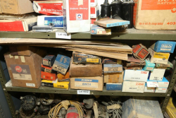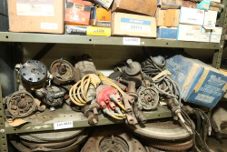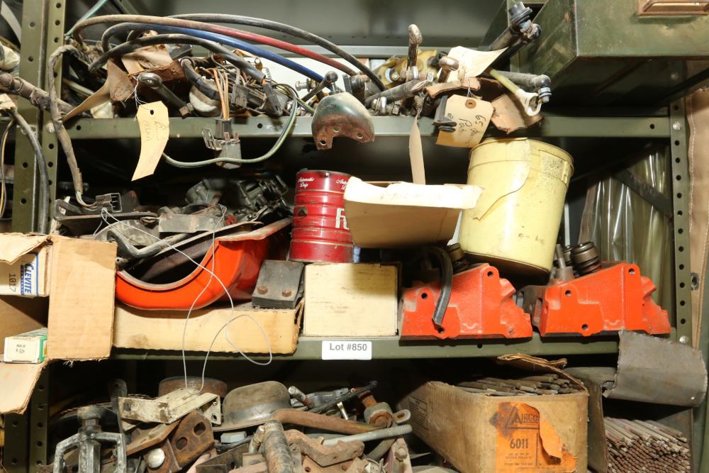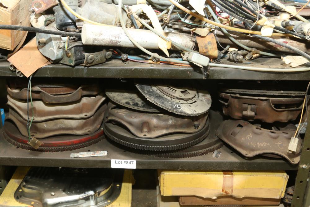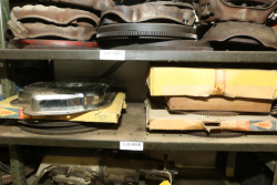Items include automotive magazines & literature incl "Hot Rod" magazine, "Rod Action", "Truckin' ", etc.; Skat Blast sand blaster; license plates; exhaust piping/hoses/brackets, etc.; ball joint kits; camshafts/sockets/fittings; tap & dies; transmissions; manifolds; carburetors; headlights; fenders & doors; wheels; chrome bumpers; gas tanks; seats/seat frames; wheel covers; mufflers; brake drums; bolts of interior fabric; Kellogg-American air compressor; AC compressors; steering components; body panels; hoods; riding lawn mowers; axles; starters; walk behind push mowers and more. Items located in Ringoes, NJ.
