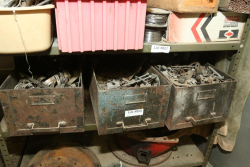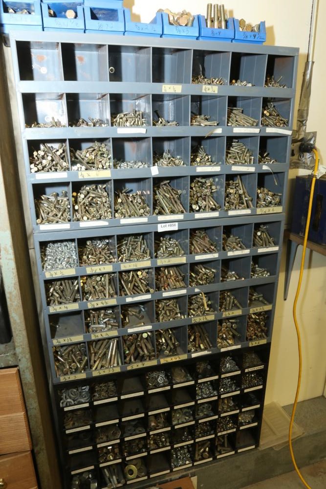 Metal organizer shelves having hardware incl nuts, bolts, washers, nails, locking washers, etc.