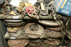 Assortment of flywheels, clutches and pressure plates.