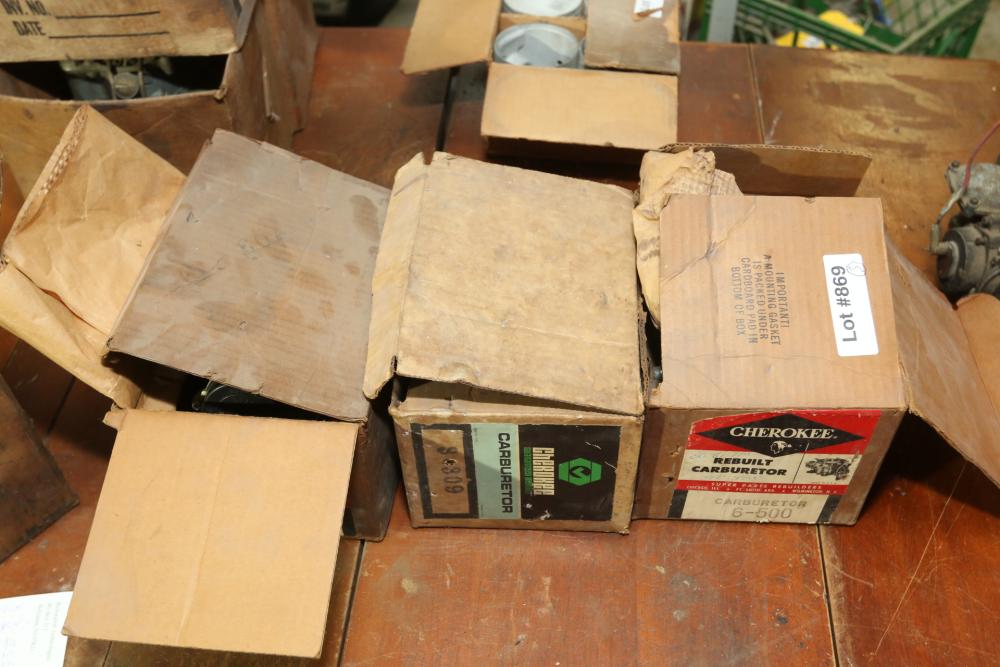 Cherokee carburetors in boxes incl # 6-500, # 3-309, and # 6-703.