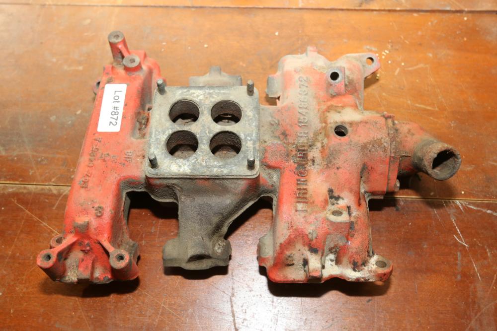 Intake manifold having single carburetor port on top embossed appearing to be "F0Z-C425-A".