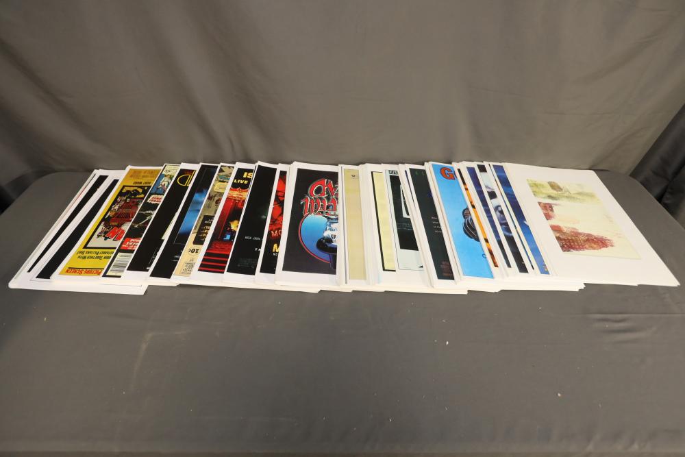 Items include reproduction posters of many different genres of celebrities; music artists and movies including "Key Largo"; "The African Queen"; "Scarface"; "A Nightmare on Elm Street"; "Chitty Chitty Bang Bang"; "Judas Priest"; "Capote"; "A Star Is Born"; "Macbeth"; "Allman Brothers"; "Flash Gordon"; Hairspray"; "Audrey Hepburn"; "The War of the Worlds"; "La Dolce Vita"; "Joni Mitchell"; "King Solomon's Mines"; "Batman"; "Dr. Who"; "The Cotton Club"; "Fiat"; "The Motels"; "North Sea Jazz Fest"; "Julius Caesar"; "Easy Rider"; "The Graduate"; "Titanic"; "Josephine Baker"; "Jaws 2"; "Ghetto Freaks"; "Cyrano"; "Dead Reckoning"; "The Hustler"; "Jurassic Park"; "The Doobie Brothers"; "Goldfinger"; "Spartacus"; "Animal Farm"; "Monty Python"; "The Grapes of Wrath"; poster mock-ups and source materials including post cards, clippings, images, and pages and much more. Most pieces throughout the auction are 11" x 17." Items are located in Pleasant Valley, NY.