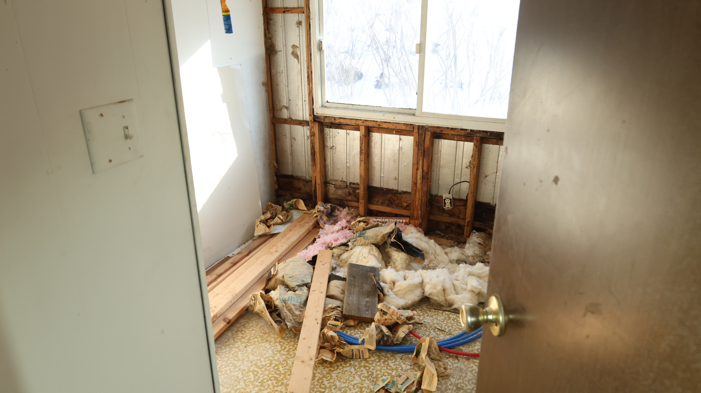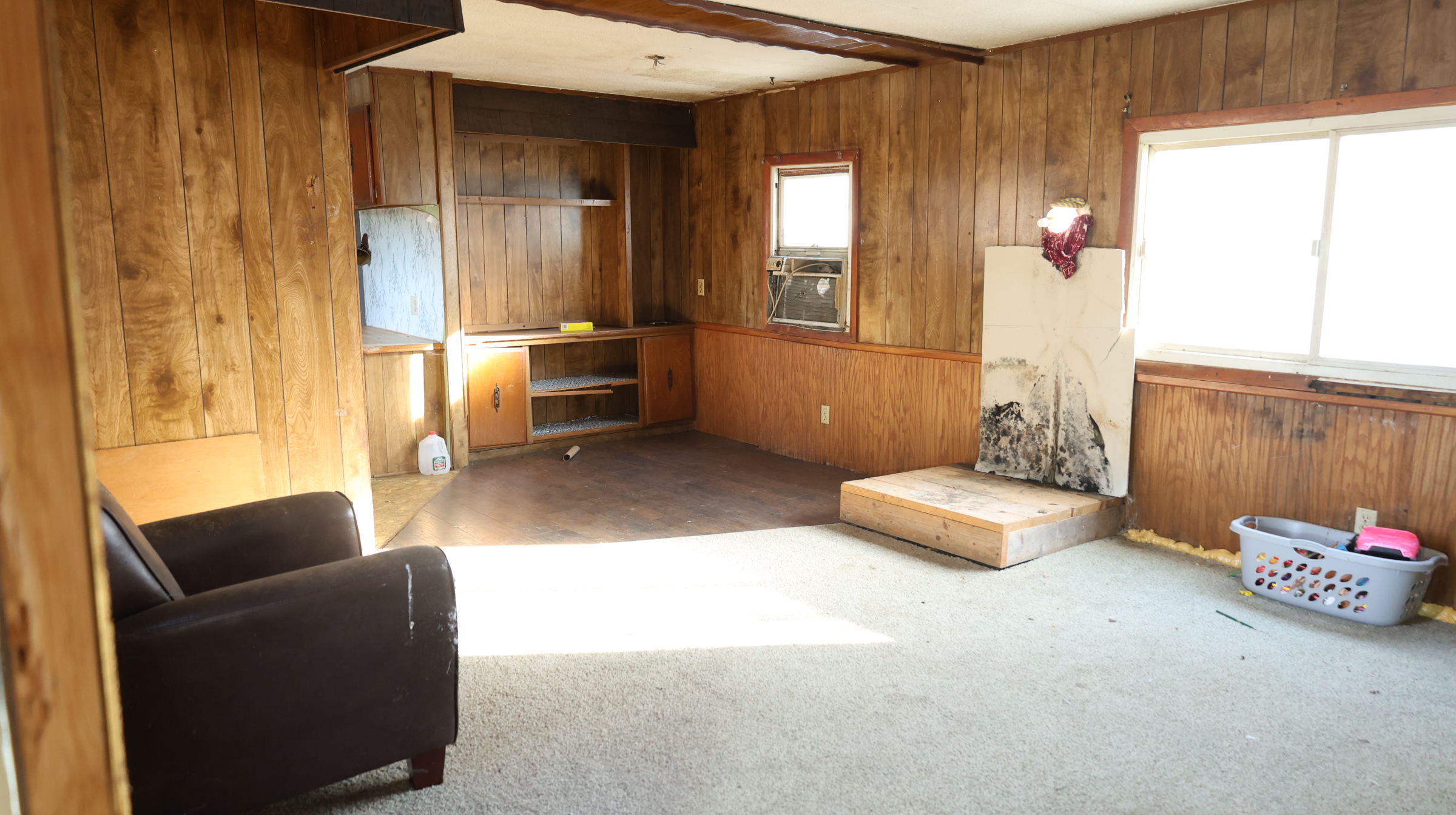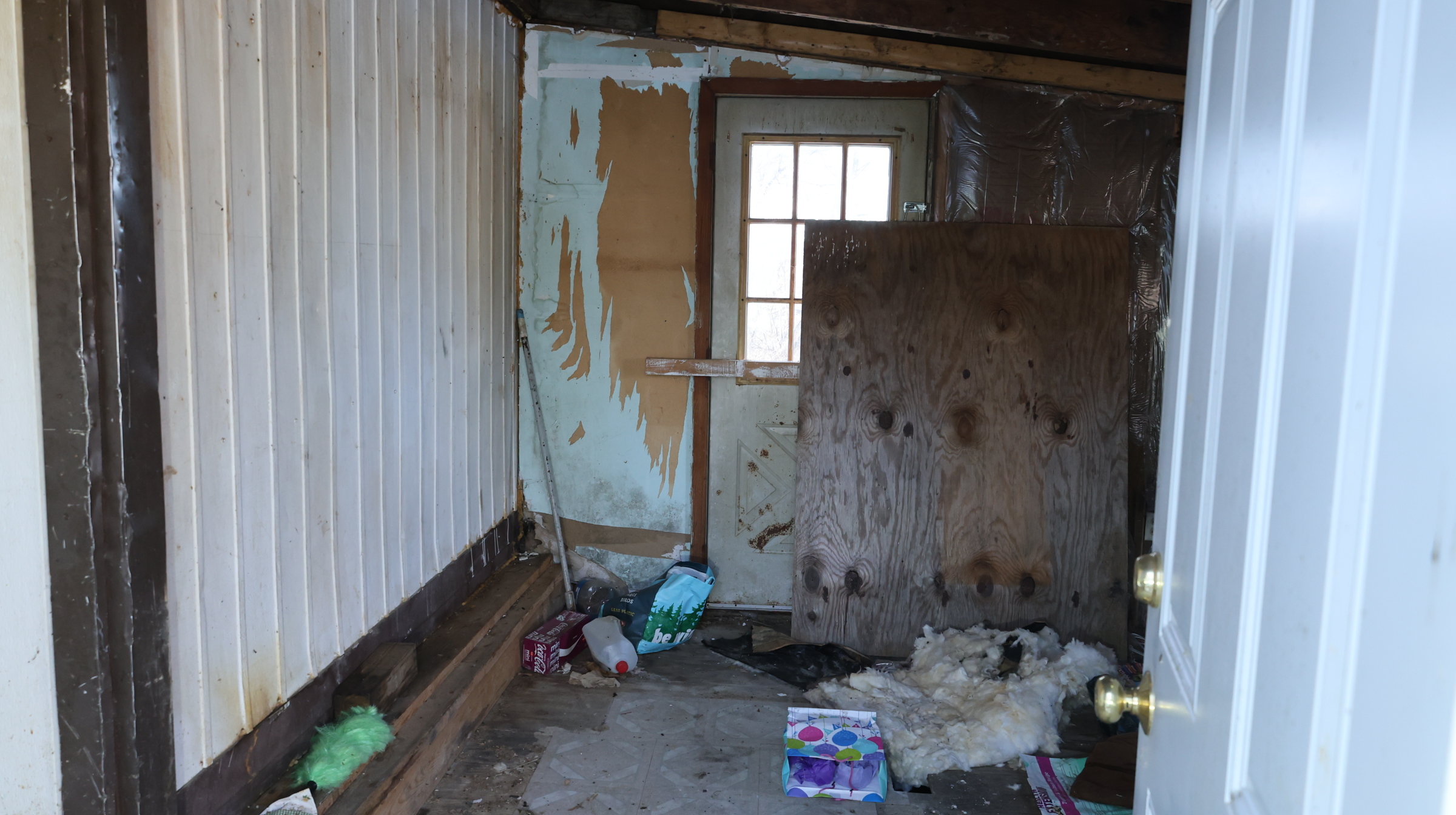 | Mobile home, porch. |
