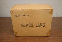 Masthome glass cookie jar with lid. Appearing to be new in original box.