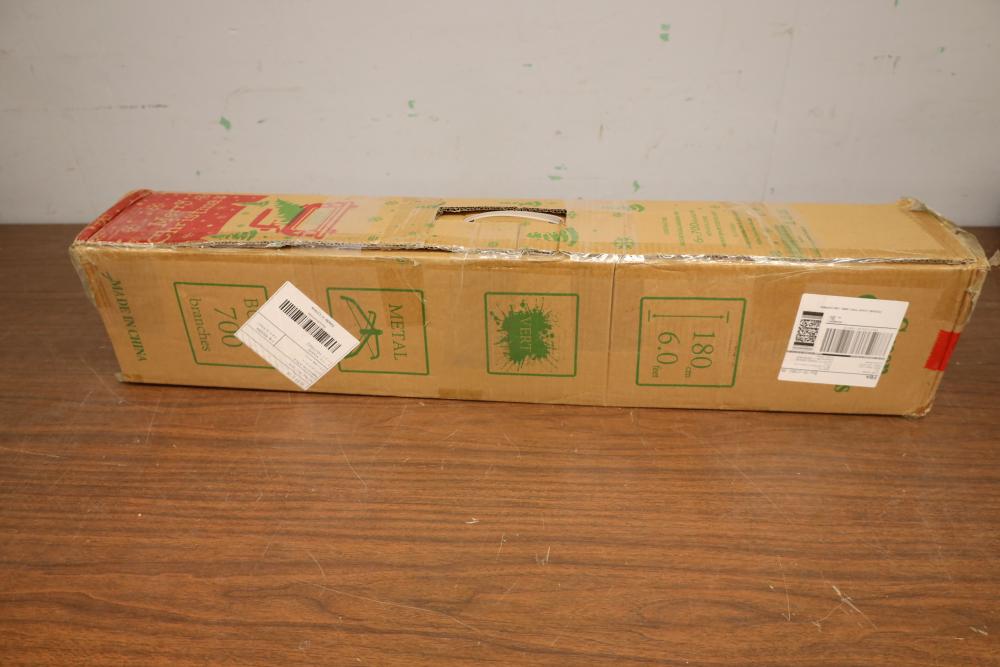 6' artificial green Christmas tree. Appearing to be new in original box.