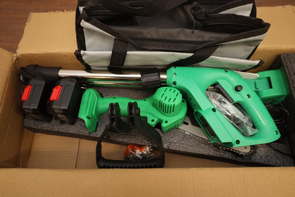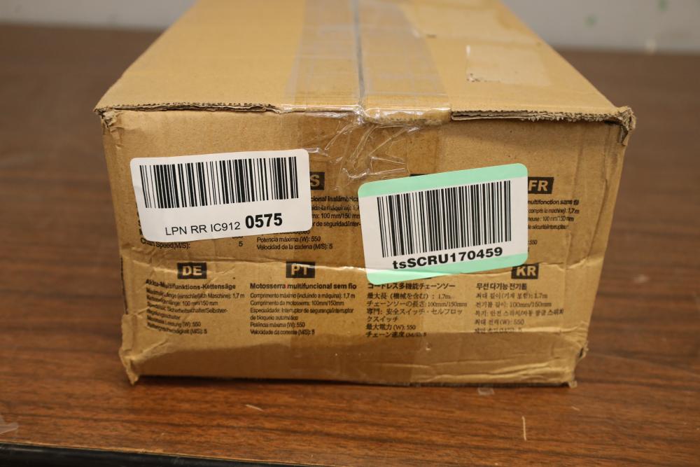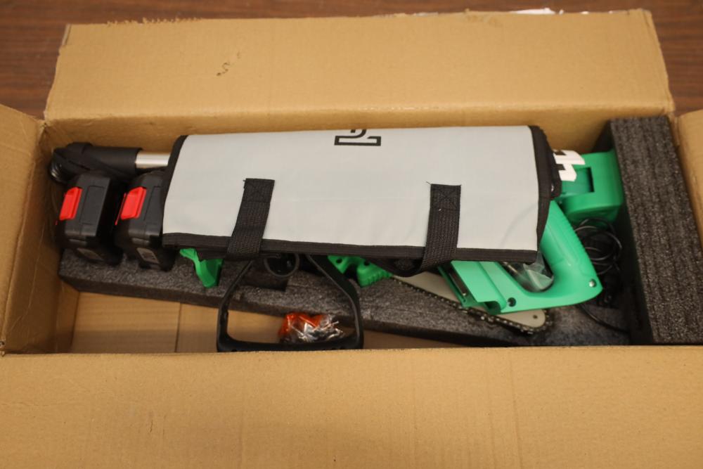 Professional Garden Tools 20V cordless multifunctional chainsaw. Appearing to be new in original box.