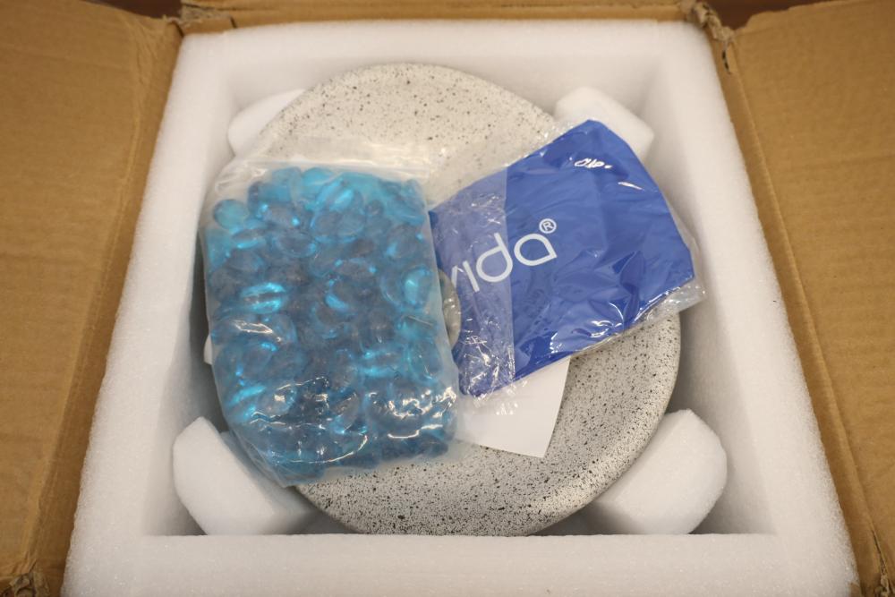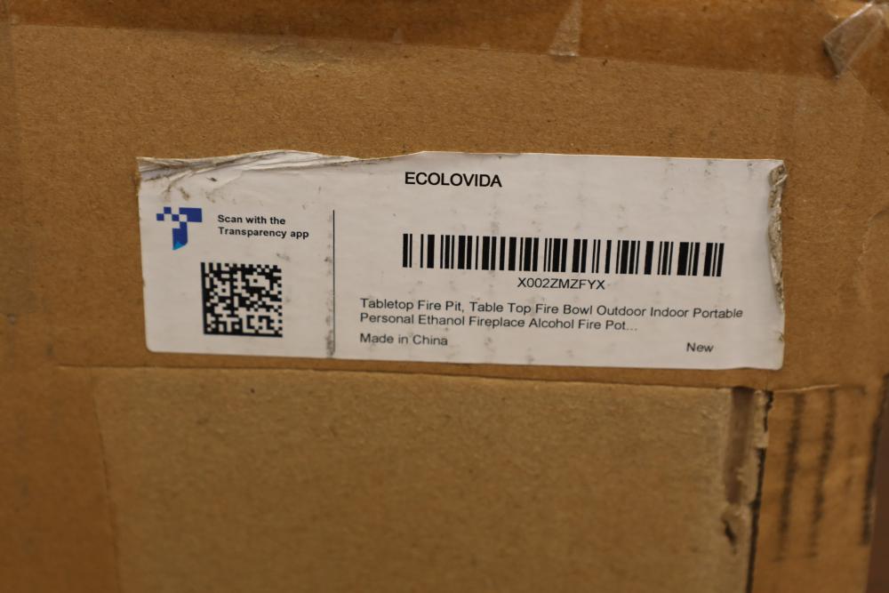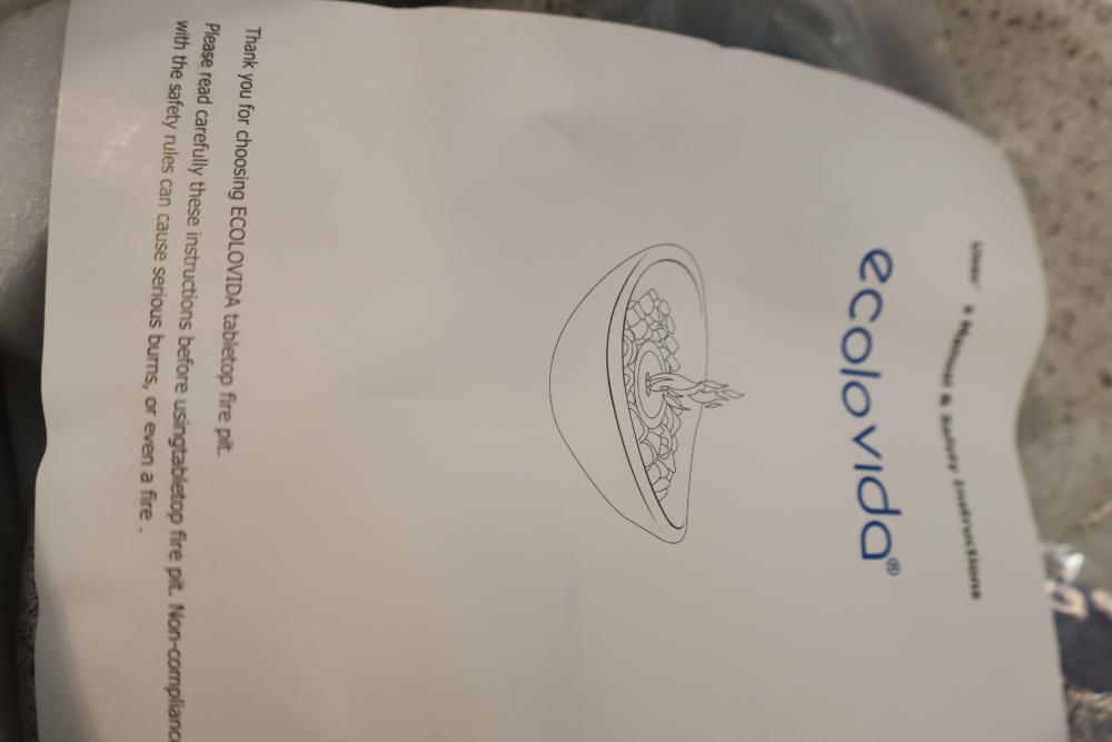 Ecolovida tabletop fire bowl for outdoor or indoor portable use. Appearing to be new in original box.