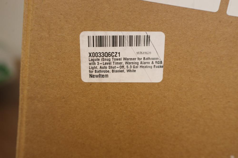 Lagute iSnug towel warmer for bathroom with three level timer, 5.3 gallon heating bucket. Appearing to be new in original box.