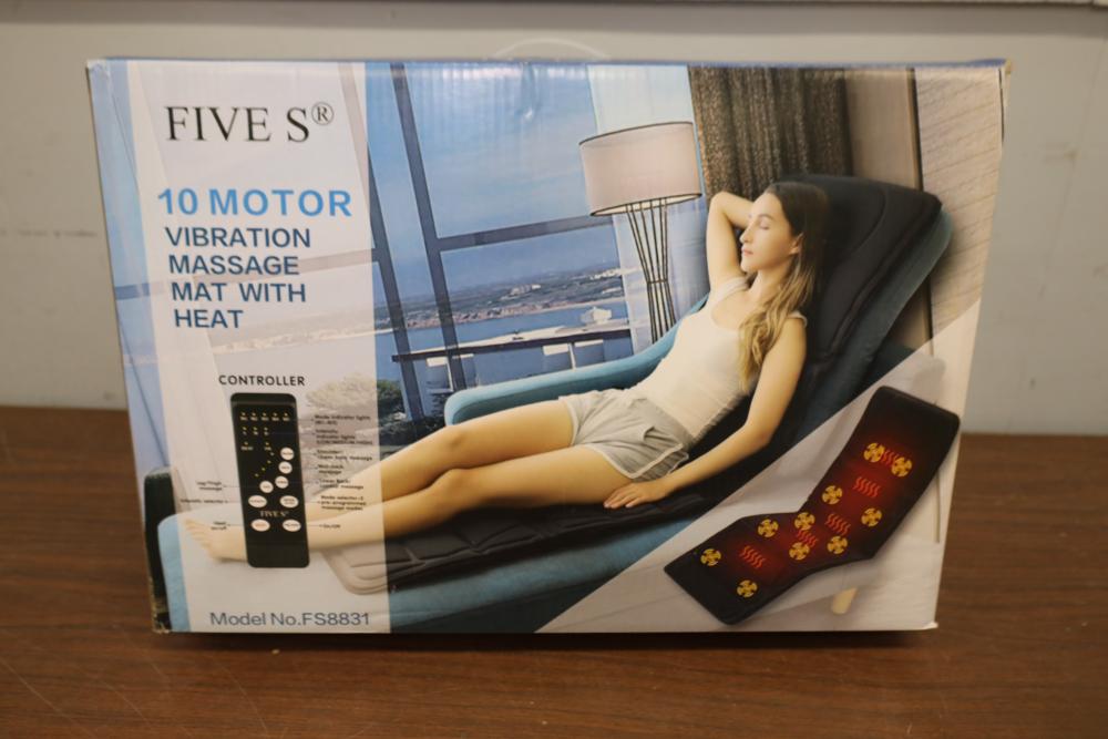 Five S 10 motor vibration massage mat with heat, model FS8831. Appearing to be new in original box.