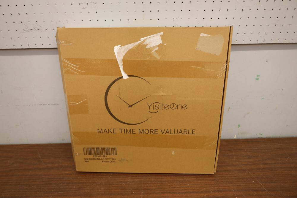 YisiteOne large decorative wall clock 24.25" X 17.5", black in color. Appearing to be in original box.