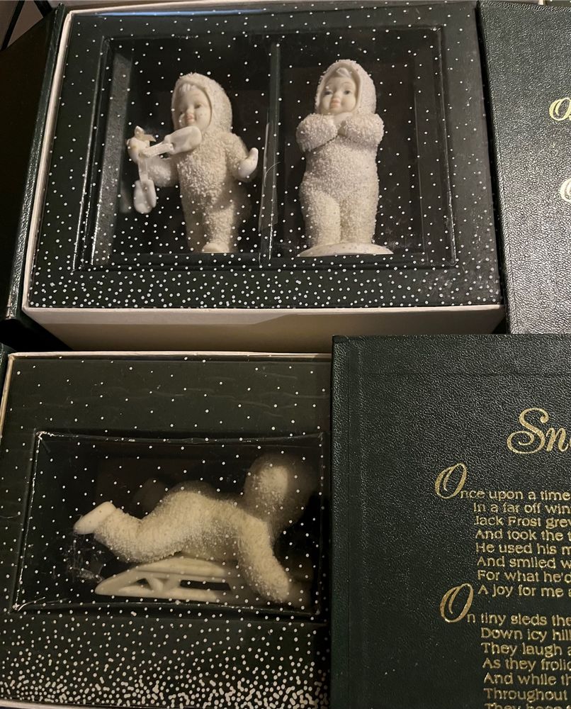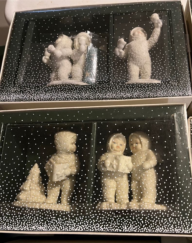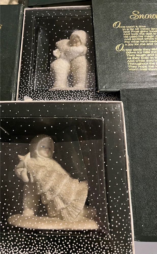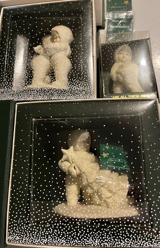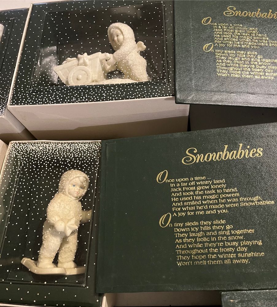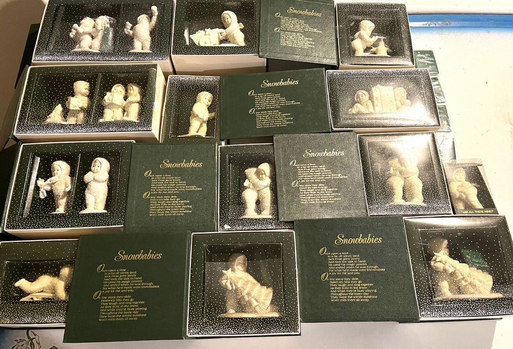 Dept 56 "Winter Tales of the Snowbabies". 16 Winter Tales of the Snowbabies in 13 boxes (two duplicates). See photos for models. Located in the basement.