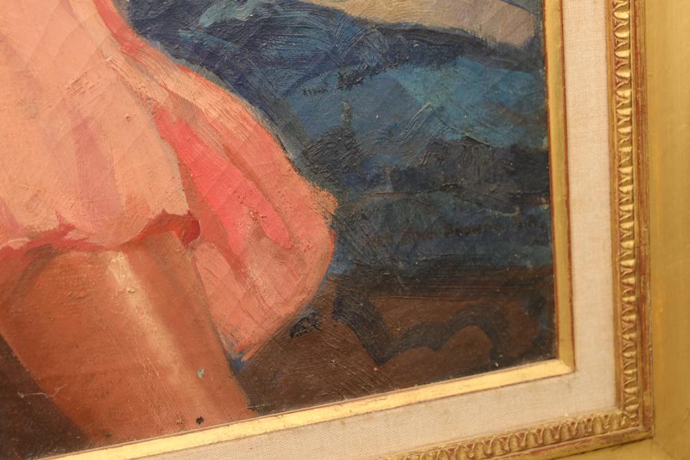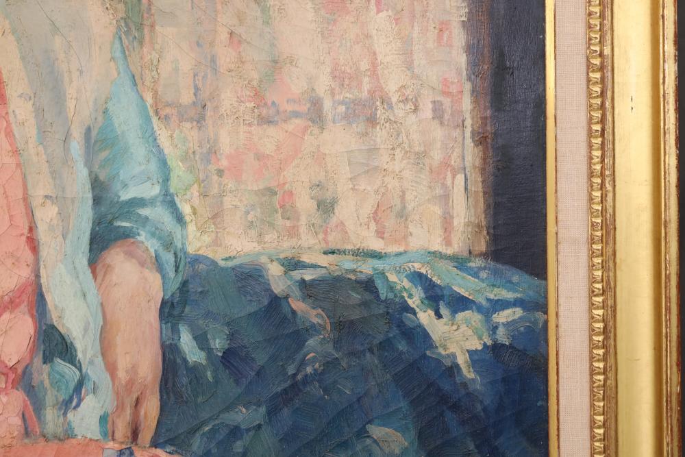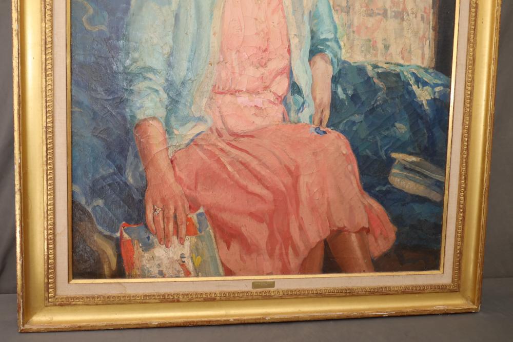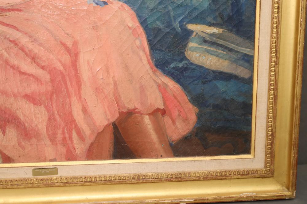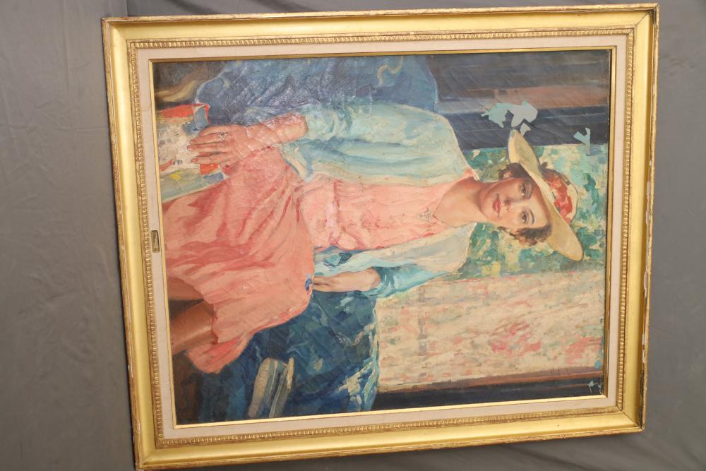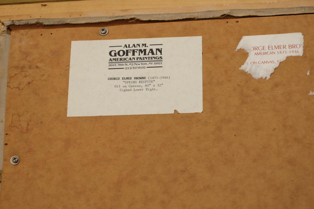 Oil on Canvas, "Spring Respite" by George Elmer Browne. Framed. Signed lower right. 40"x32" Pickup only.