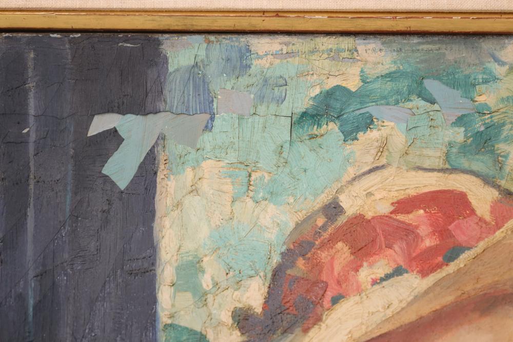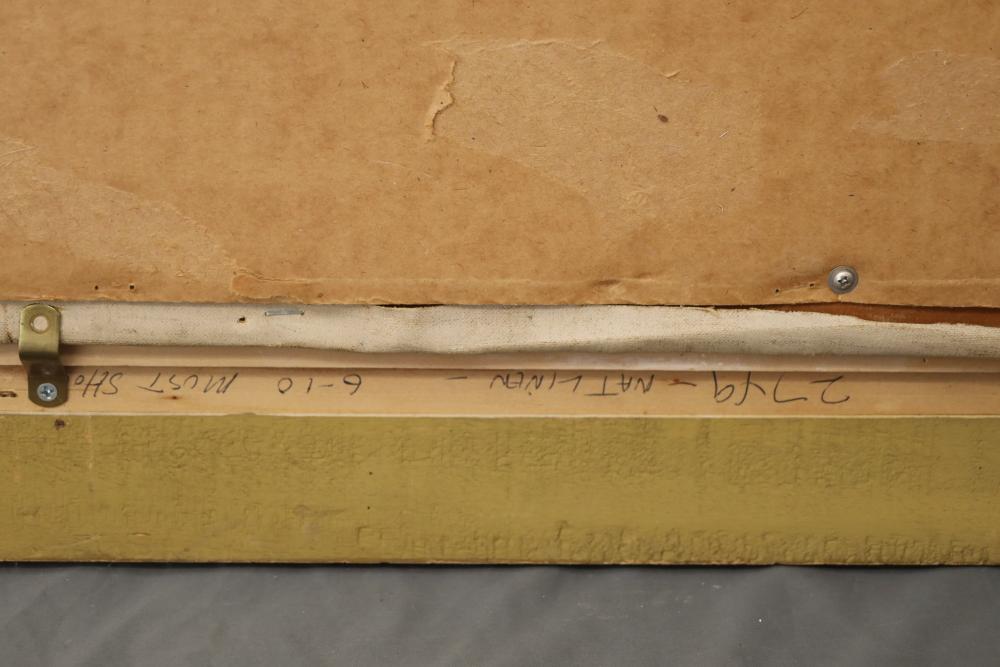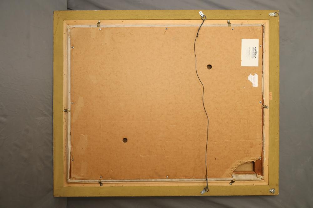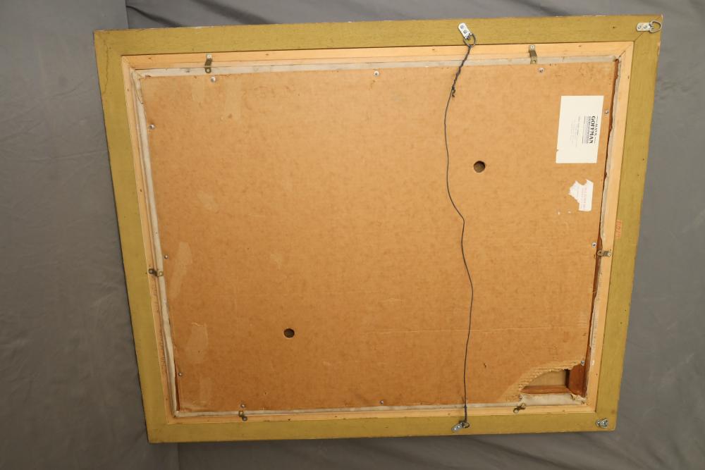 Items includes artwork: Oil on framed canvas, abstract art. Title on back "Night Cometh"; Oil on canvas, abstract art. Title on back "Far Edge". Signature on front appears to read "Syd Weinstein"; Oil on Canvas, abstract herd of horses. Signed in middle of painting. Written on back "Les Affectueux - II 1998"; Oil on canvas framed. Aquatic ship scene; Color etching and aquatint on paper. Titled "Sound of a Forest Brook" Signed lower right " Karl Schrag 86' " numbered 7/40; Print on paper framed. Signed "Amen" in lower right corner. Lower left reads "AP The City" ; Mixed Media Collage on paper. Signed lower left corner "William McGee 1989" Title "By the Sea"; Two framed Egyptian prints on Papyrus. "Nefertari and Hathor" and "Ramsess II Moving into Battle" and much more! Items are located in Pleasant Valley, NY.