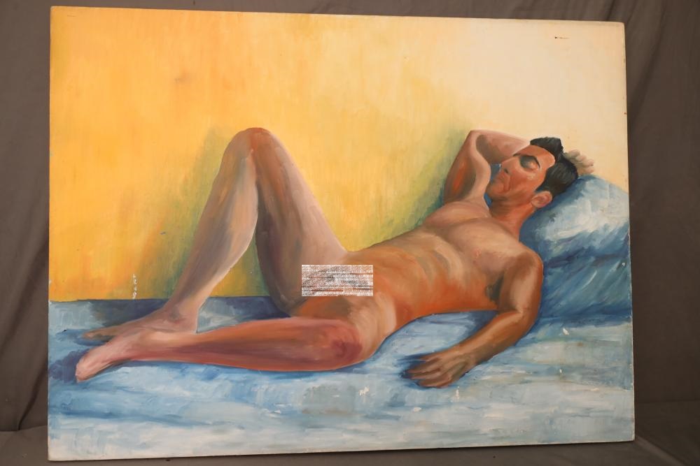 Items includes artwork: Oil on framed canvas, abstract art. Title on back "Night Cometh"; Oil on canvas, abstract art. Title on back "Far Edge". Signature on front appears to read "Syd Weinstein"; Oil on Canvas, abstract herd of horses. Signed in middle of painting. Written on back "Les Affectueux - II 1998"; Oil on canvas framed. Aquatic ship scene; Color etching and aquatint on paper. Titled "Sound of a Forest Brook" Signed lower right " Karl Schrag 86' " numbered 7/40; Print on paper framed. Signed "Amen" in lower right corner. Lower left reads "AP The City" ; Mixed Media Collage on paper. Signed lower left corner "William McGee 1989" Title "By the Sea"; Two framed Egyptian prints on Papyrus. "Nefertari and Hathor" and "Ramsess II Moving into Battle" and much more! Items are located in Pleasant Valley, NY.
