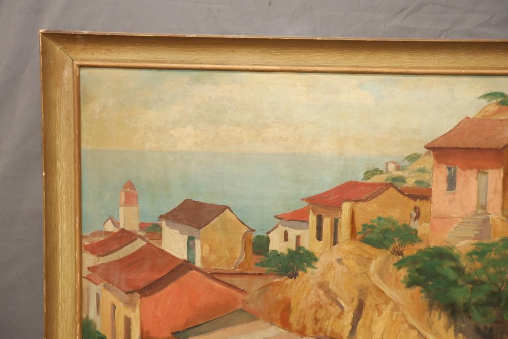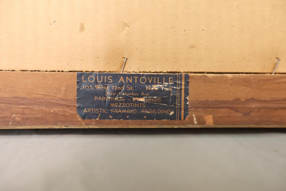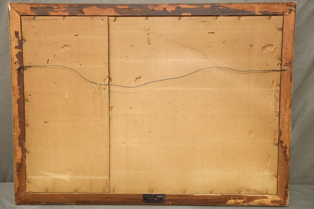 Items includes artwork: Oil on framed canvas, abstract art. Title on back "Night Cometh"; Oil on canvas, abstract art. Title on back "Far Edge". Signature on front appears to read "Syd Weinstein"; Oil on Canvas, abstract herd of horses. Signed in middle of painting. Written on back "Les Affectueux - II 1998"; Oil on canvas framed. Aquatic ship scene; Color etching and aquatint on paper. Titled "Sound of a Forest Brook" Signed lower right " Karl Schrag 86' " numbered 7/40; Print on paper framed. Signed "Amen" in lower right corner. Lower left reads "AP The City" ; Mixed Media Collage on paper. Signed lower left corner "William McGee 1989" Title "By the Sea"; Two framed Egyptian prints on Papyrus. "Nefertari and Hathor" and "Ramsess II Moving into Battle" and much more! Items are located in Pleasant Valley, NY.