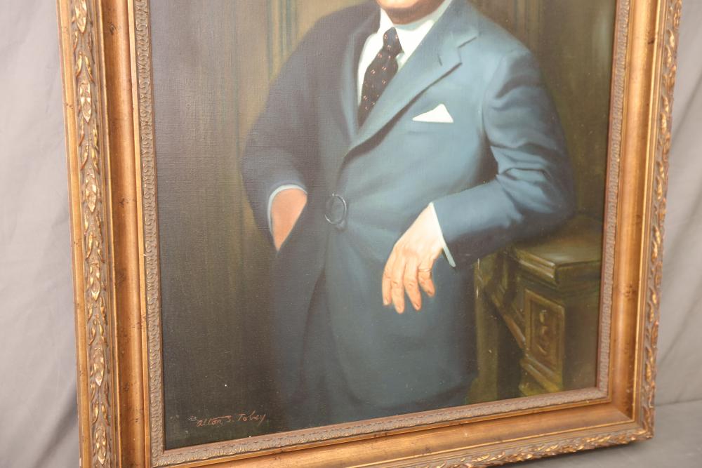 Oil on canvas with gilt frame, portrait of well dressed gentleman. 48"x38". Pickup only.
