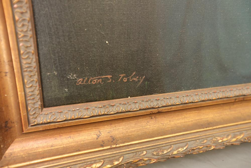 Items includes artwork: Oil on framed canvas, abstract art. Title on back "Night Cometh"; Oil on canvas, abstract art. Title on back "Far Edge". Signature on front appears to read "Syd Weinstein"; Oil on Canvas, abstract herd of horses. Signed in middle of painting. Written on back "Les Affectueux - II 1998"; Oil on canvas framed. Aquatic ship scene; Color etching and aquatint on paper. Titled "Sound of a Forest Brook" Signed lower right " Karl Schrag 86' " numbered 7/40; Print on paper framed. Signed "Amen" in lower right corner. Lower left reads "AP The City" ; Mixed Media Collage on paper. Signed lower left corner "William McGee 1989" Title "By the Sea"; Two framed Egyptian prints on Papyrus. "Nefertari and Hathor" and "Ramsess II Moving into Battle" and much more! Items are located in Pleasant Valley, NY.