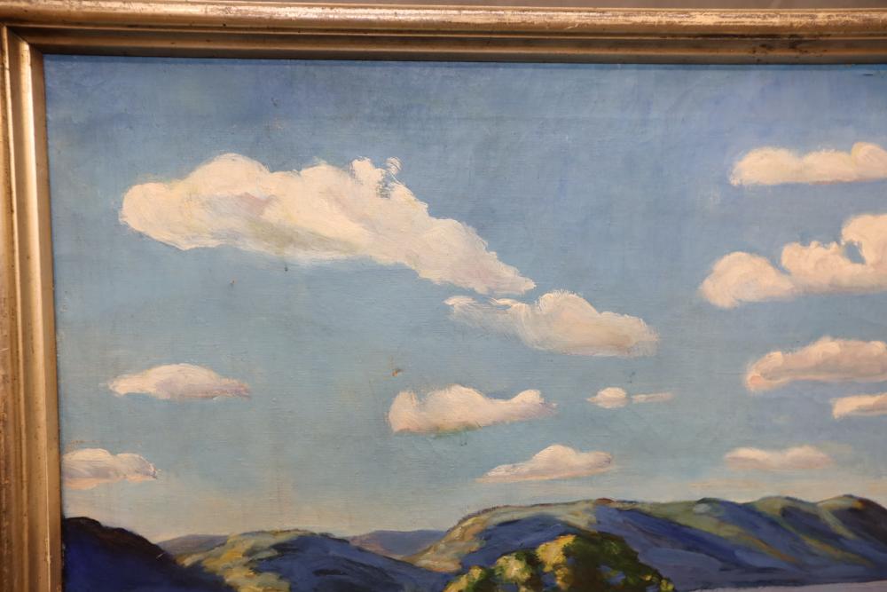 Items includes artwork: Oil on framed canvas, abstract art. Title on back "Night Cometh"; Oil on canvas, abstract art. Title on back "Far Edge". Signature on front appears to read "Syd Weinstein"; Oil on Canvas, abstract herd of horses. Signed in middle of painting. Written on back "Les Affectueux - II 1998"; Oil on canvas framed. Aquatic ship scene; Color etching and aquatint on paper. Titled "Sound of a Forest Brook" Signed lower right " Karl Schrag 86' " numbered 7/40; Print on paper framed. Signed "Amen" in lower right corner. Lower left reads "AP The City" ; Mixed Media Collage on paper. Signed lower left corner "William McGee 1989" Title "By the Sea"; Two framed Egyptian prints on Papyrus. "Nefertari and Hathor" and "Ramsess II Moving into Battle" and much more! Items are located in Pleasant Valley, NY.
