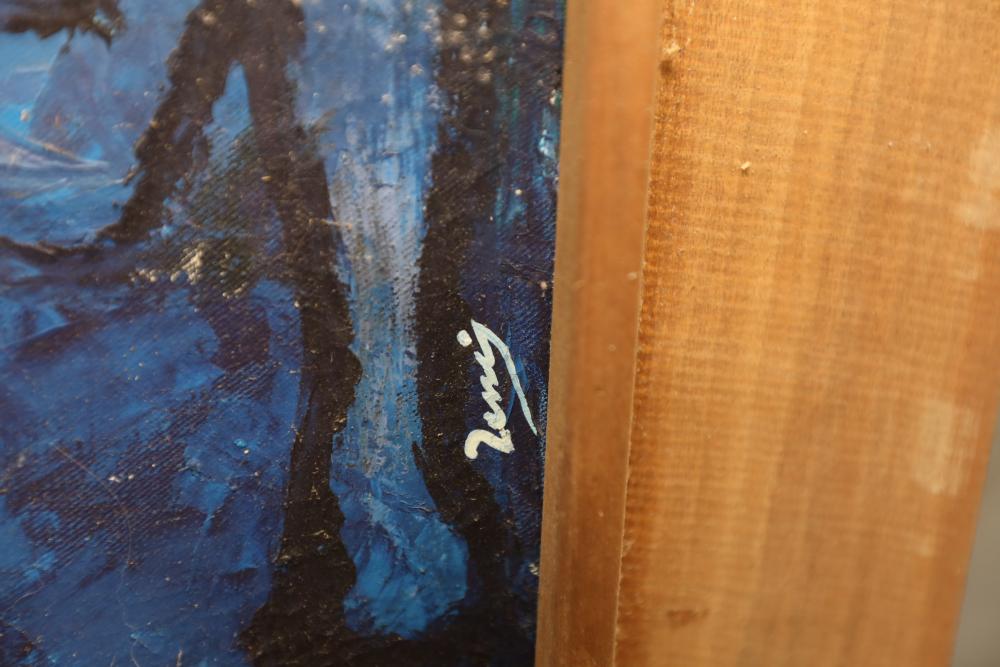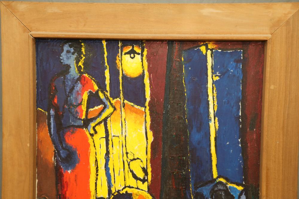 Items includes artwork: Oil on framed canvas, abstract art. Title on back "Night Cometh"; Oil on canvas, abstract art. Title on back "Far Edge". Signature on front appears to read "Syd Weinstein"; Oil on Canvas, abstract herd of horses. Signed in middle of painting. Written on back "Les Affectueux - II 1998"; Oil on canvas framed. Aquatic ship scene; Color etching and aquatint on paper. Titled "Sound of a Forest Brook" Signed lower right " Karl Schrag 86' " numbered 7/40; Print on paper framed. Signed "Amen" in lower right corner. Lower left reads "AP The City" ; Mixed Media Collage on paper. Signed lower left corner "William McGee 1989" Title "By the Sea"; Two framed Egyptian prints on Papyrus. "Nefertari and Hathor" and "Ramsess II Moving into Battle" and much more! Items are located in Pleasant Valley, NY.