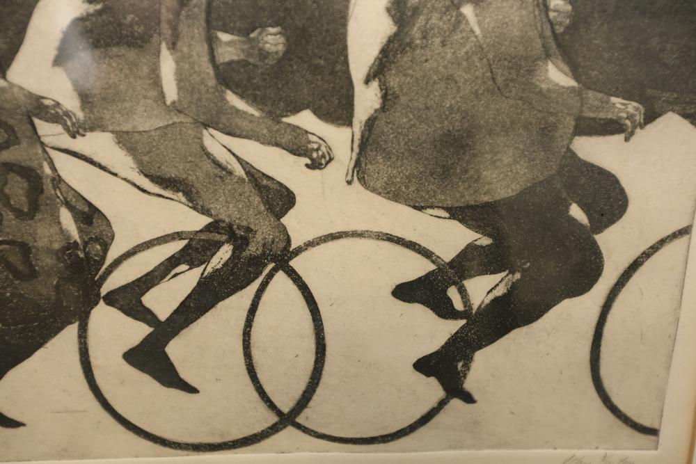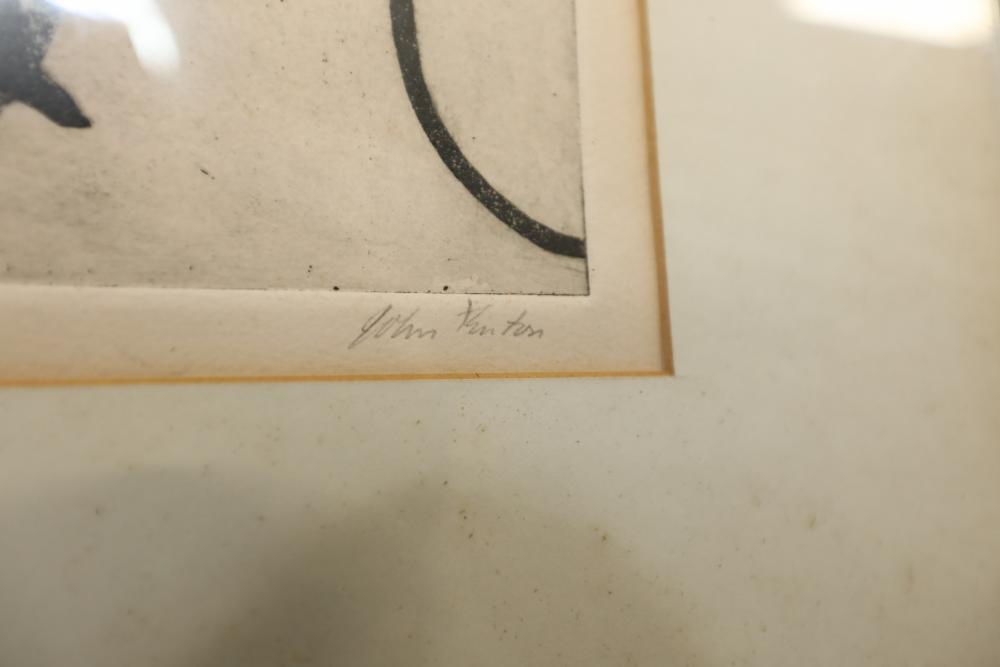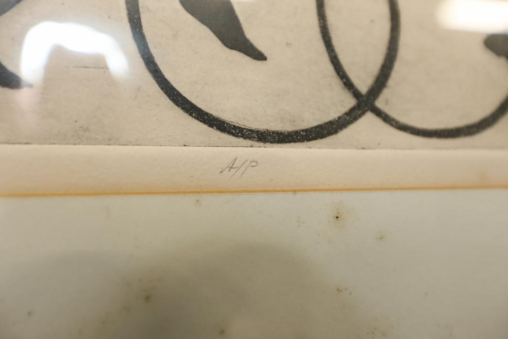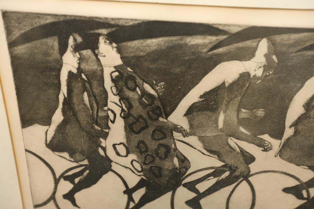 Items includes artwork: Oil on framed canvas, abstract art. Title on back "Night Cometh"; Oil on canvas, abstract art. Title on back "Far Edge". Signature on front appears to read "Syd Weinstein"; Oil on Canvas, abstract herd of horses. Signed in middle of painting. Written on back "Les Affectueux - II 1998"; Oil on canvas framed. Aquatic ship scene; Color etching and aquatint on paper. Titled "Sound of a Forest Brook" Signed lower right " Karl Schrag 86' " numbered 7/40; Print on paper framed. Signed "Amen" in lower right corner. Lower left reads "AP The City" ; Mixed Media Collage on paper. Signed lower left corner "William McGee 1989" Title "By the Sea"; Two framed Egyptian prints on Papyrus. "Nefertari and Hathor" and "Ramsess II Moving into Battle" and much more! Items are located in Pleasant Valley, NY.