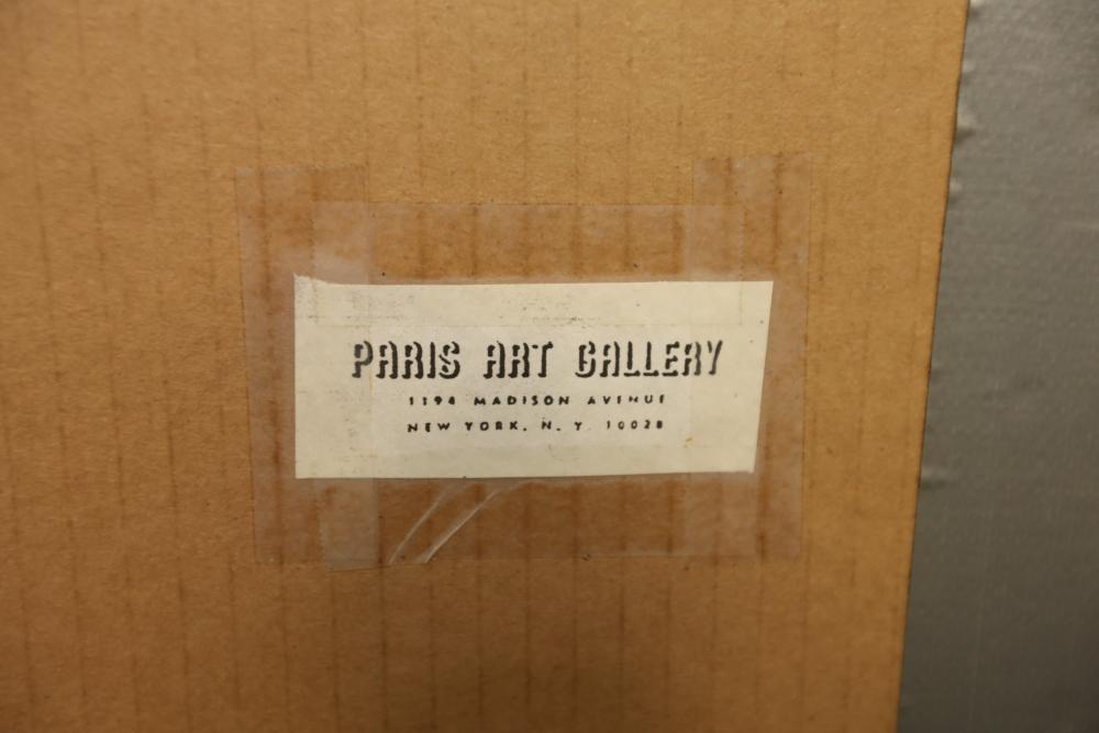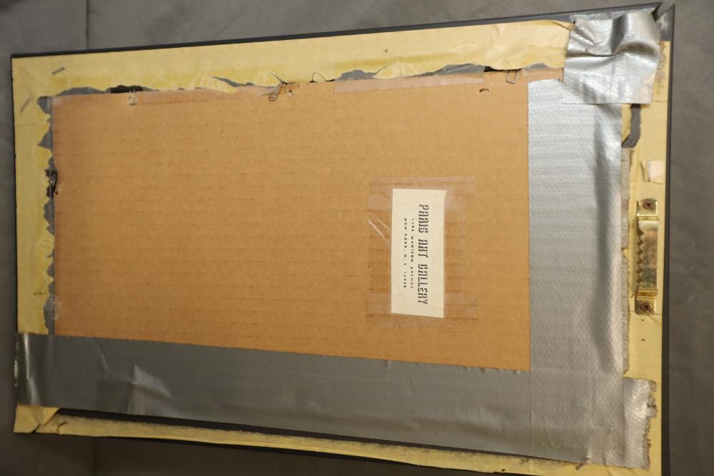 Items includes artwork: Oil on framed canvas, abstract art. Title on back "Night Cometh"; Oil on canvas, abstract art. Title on back "Far Edge". Signature on front appears to read "Syd Weinstein"; Oil on Canvas, abstract herd of horses. Signed in middle of painting. Written on back "Les Affectueux - II 1998"; Oil on canvas framed. Aquatic ship scene; Color etching and aquatint on paper. Titled "Sound of a Forest Brook" Signed lower right " Karl Schrag 86' " numbered 7/40; Print on paper framed. Signed "Amen" in lower right corner. Lower left reads "AP The City" ; Mixed Media Collage on paper. Signed lower left corner "William McGee 1989" Title "By the Sea"; Two framed Egyptian prints on Papyrus. "Nefertari and Hathor" and "Ramsess II Moving into Battle" and much more! Items are located in Pleasant Valley, NY.