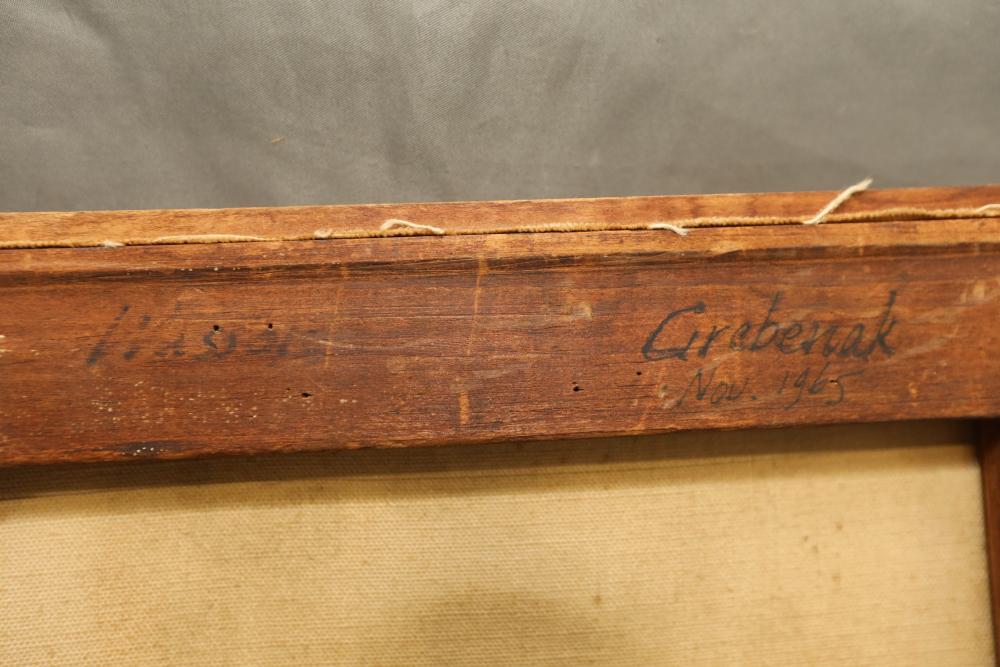 Items includes artwork: Oil on framed canvas, abstract art. Title on back "Night Cometh"; Oil on canvas, abstract art. Title on back "Far Edge". Signature on front appears to read "Syd Weinstein"; Oil on Canvas, abstract herd of horses. Signed in middle of painting. Written on back "Les Affectueux - II 1998"; Oil on canvas framed. Aquatic ship scene; Color etching and aquatint on paper. Titled "Sound of a Forest Brook" Signed lower right " Karl Schrag 86' " numbered 7/40; Print on paper framed. Signed "Amen" in lower right corner. Lower left reads "AP The City" ; Mixed Media Collage on paper. Signed lower left corner "William McGee 1989" Title "By the Sea"; Two framed Egyptian prints on Papyrus. "Nefertari and Hathor" and "Ramsess II Moving into Battle" and much more! Items are located in Pleasant Valley, NY.