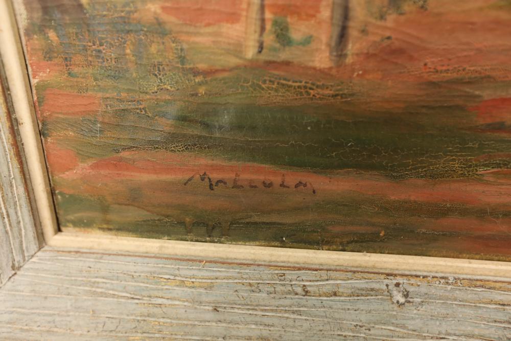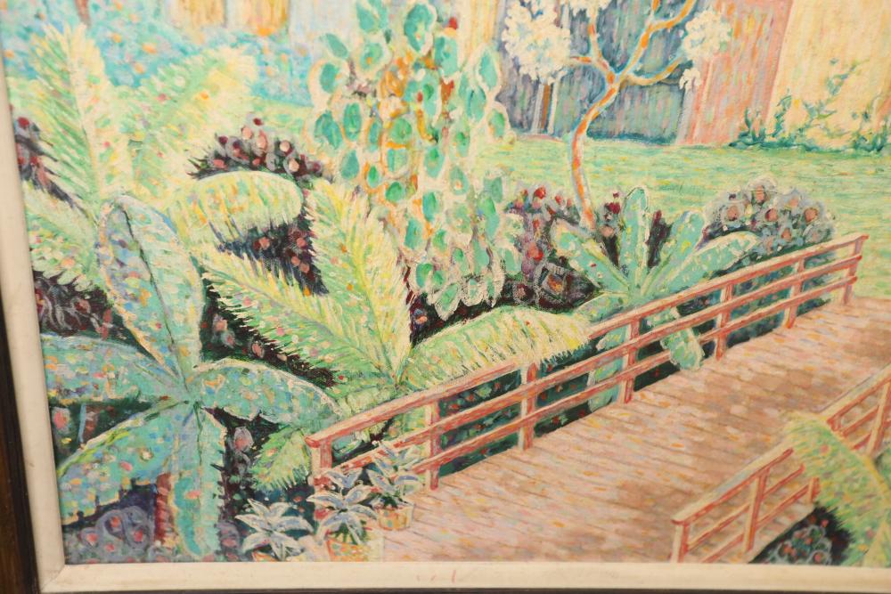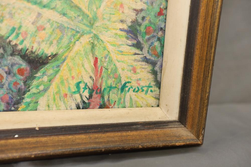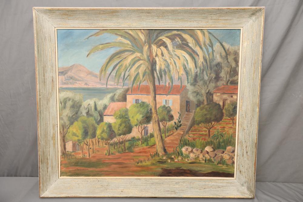 Items includes artwork: Oil on framed canvas, abstract art. Title on back "Night Cometh"; Oil on canvas, abstract art. Title on back "Far Edge". Signature on front appears to read "Syd Weinstein"; Oil on Canvas, abstract herd of horses. Signed in middle of painting. Written on back "Les Affectueux - II 1998"; Oil on canvas framed. Aquatic ship scene; Color etching and aquatint on paper. Titled "Sound of a Forest Brook" Signed lower right " Karl Schrag 86' " numbered 7/40; Print on paper framed. Signed "Amen" in lower right corner. Lower left reads "AP The City" ; Mixed Media Collage on paper. Signed lower left corner "William McGee 1989" Title "By the Sea"; Two framed Egyptian prints on Papyrus. "Nefertari and Hathor" and "Ramsess II Moving into Battle" and much more! Items are located in Pleasant Valley, NY.