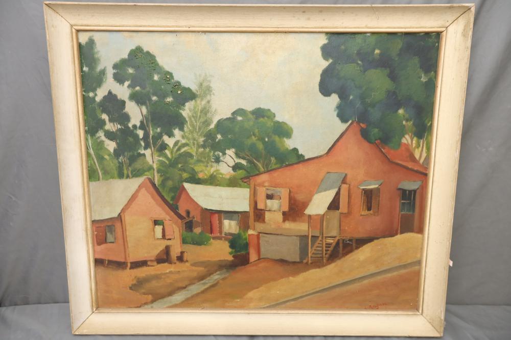 Three Oil paintings on canvas. Tropical landscapes of villages. 36"x30". Pickup only.