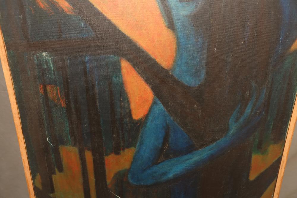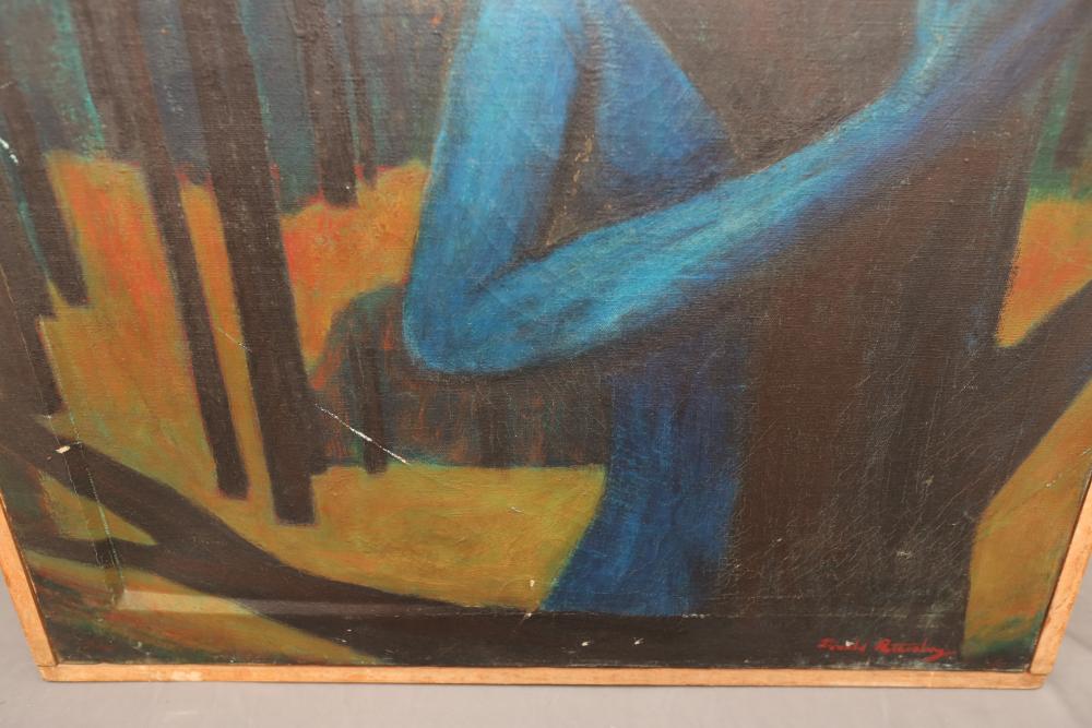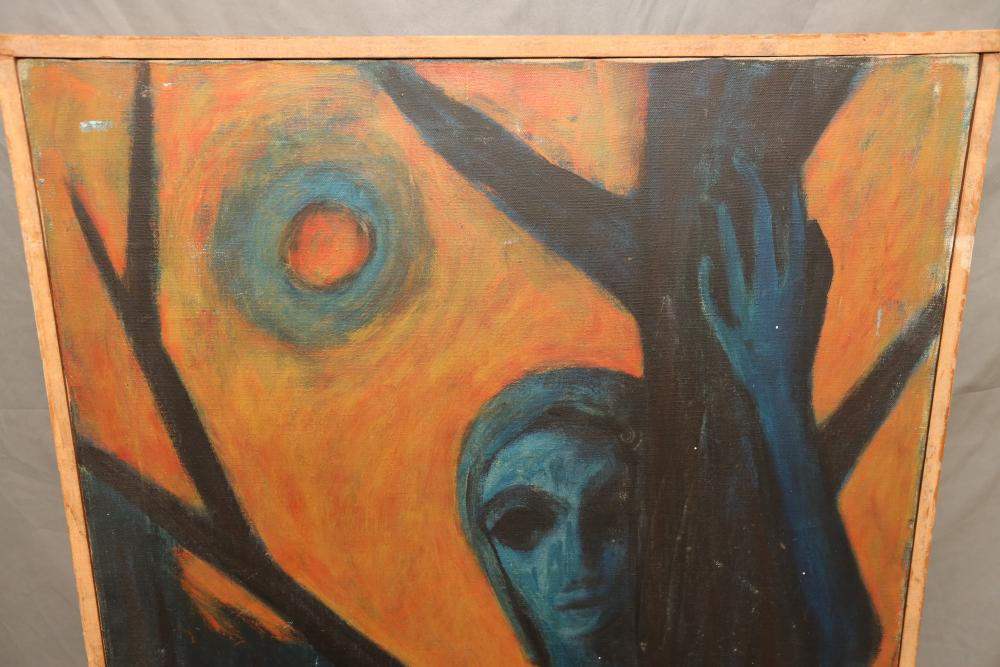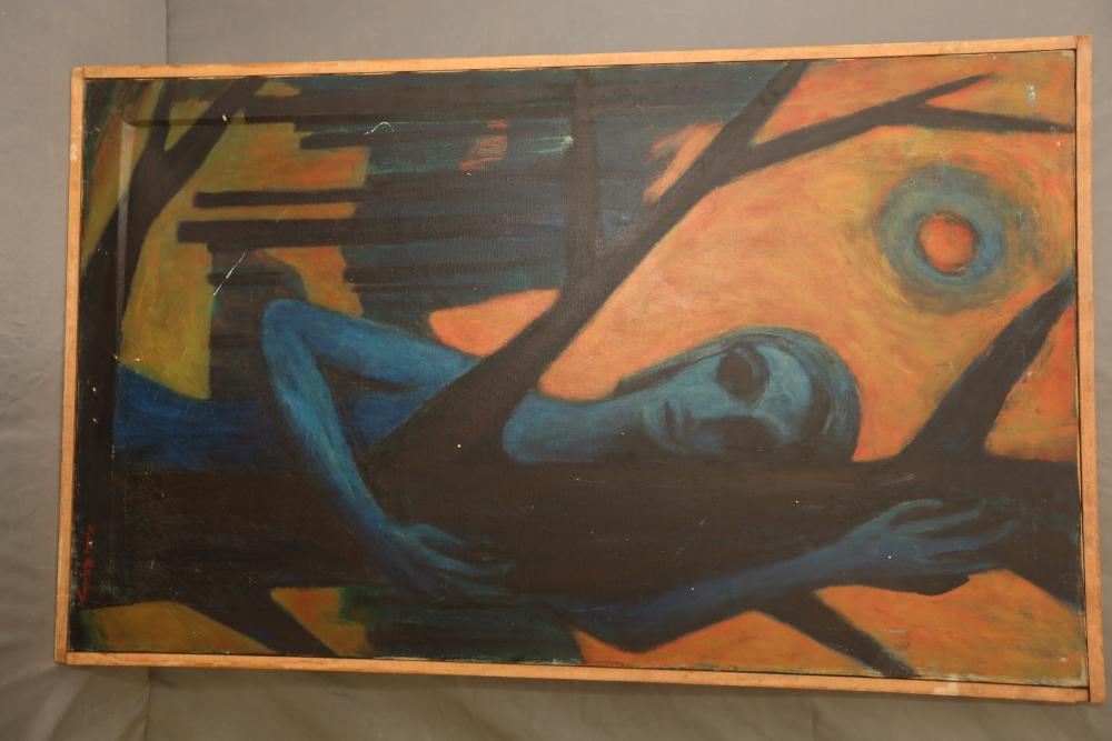 Items includes artwork: Oil on framed canvas, abstract art. Title on back "Night Cometh"; Oil on canvas, abstract art. Title on back "Far Edge". Signature on front appears to read "Syd Weinstein"; Oil on Canvas, abstract herd of horses. Signed in middle of painting. Written on back "Les Affectueux - II 1998"; Oil on canvas framed. Aquatic ship scene; Color etching and aquatint on paper. Titled "Sound of a Forest Brook" Signed lower right " Karl Schrag 86' " numbered 7/40; Print on paper framed. Signed "Amen" in lower right corner. Lower left reads "AP The City" ; Mixed Media Collage on paper. Signed lower left corner "William McGee 1989" Title "By the Sea"; Two framed Egyptian prints on Papyrus. "Nefertari and Hathor" and "Ramsess II Moving into Battle" and much more! Items are located in Pleasant Valley, NY.