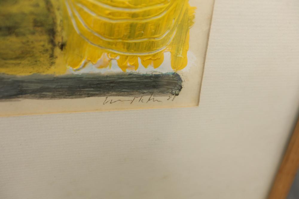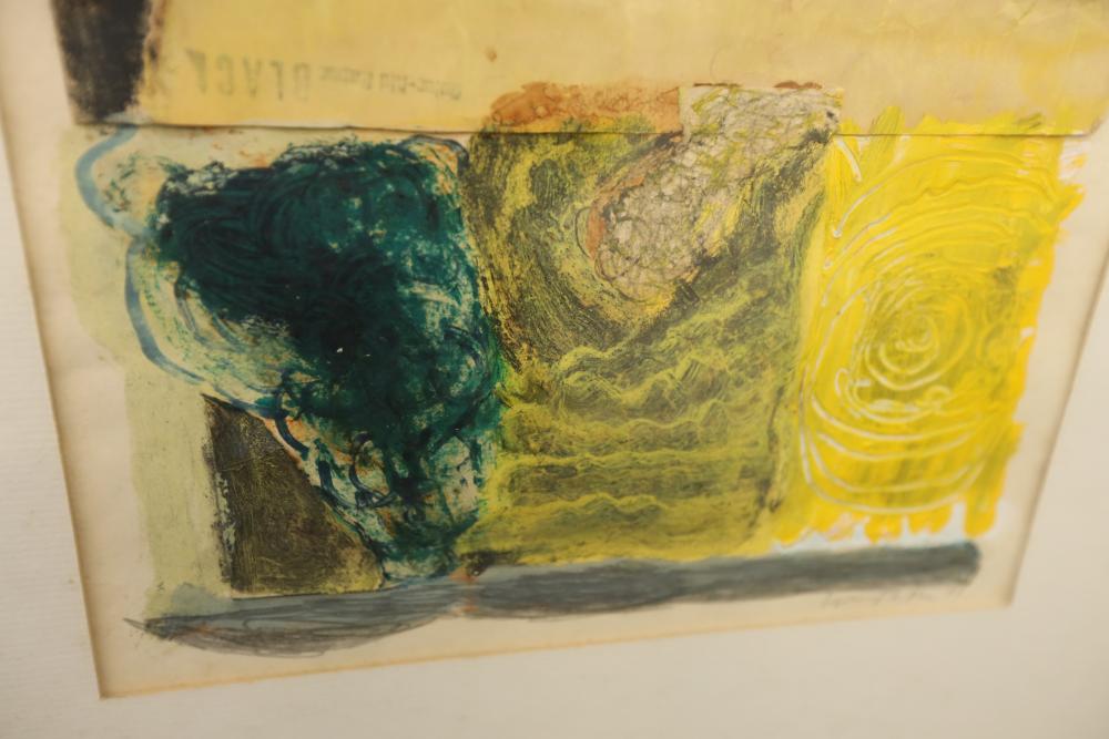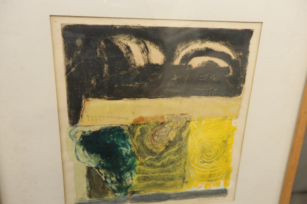 Items includes artwork: Oil on framed canvas, abstract art. Title on back "Night Cometh"; Oil on canvas, abstract art. Title on back "Far Edge". Signature on front appears to read "Syd Weinstein"; Oil on Canvas, abstract herd of horses. Signed in middle of painting. Written on back "Les Affectueux - II 1998"; Oil on canvas framed. Aquatic ship scene; Color etching and aquatint on paper. Titled "Sound of a Forest Brook" Signed lower right " Karl Schrag 86' " numbered 7/40; Print on paper framed. Signed "Amen" in lower right corner. Lower left reads "AP The City" ; Mixed Media Collage on paper. Signed lower left corner "William McGee 1989" Title "By the Sea"; Two framed Egyptian prints on Papyrus. "Nefertari and Hathor" and "Ramsess II Moving into Battle" and much more! Items are located in Pleasant Valley, NY.