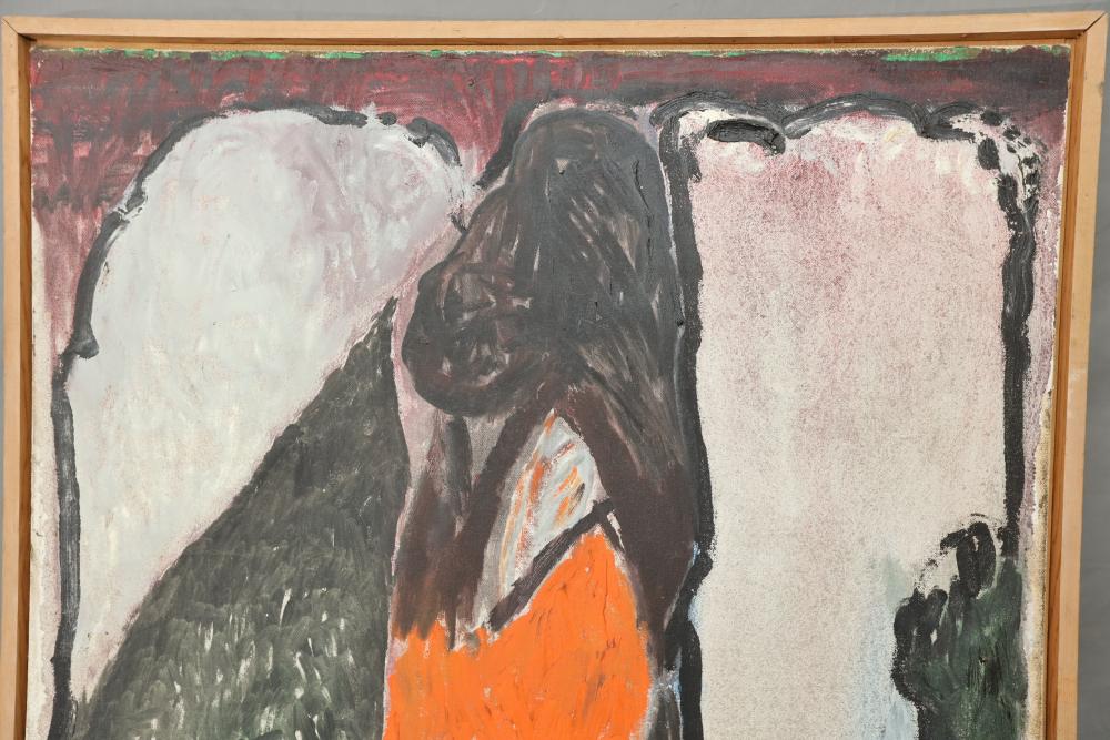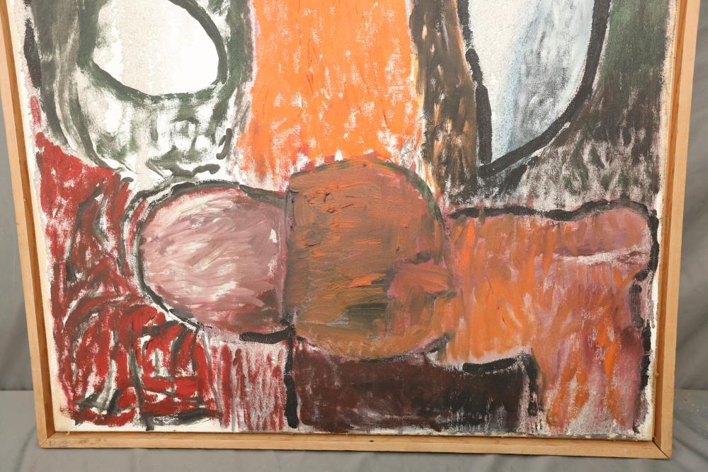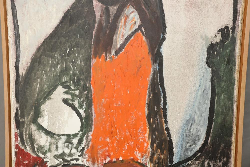 Items includes artwork: Oil on framed canvas, abstract art. Title on back "Night Cometh"; Oil on canvas, abstract art. Title on back "Far Edge". Signature on front appears to read "Syd Weinstein"; Oil on Canvas, abstract herd of horses. Signed in middle of painting. Written on back "Les Affectueux - II 1998"; Oil on canvas framed. Aquatic ship scene; Color etching and aquatint on paper. Titled "Sound of a Forest Brook" Signed lower right " Karl Schrag 86' " numbered 7/40; Print on paper framed. Signed "Amen" in lower right corner. Lower left reads "AP The City" ; Mixed Media Collage on paper. Signed lower left corner "William McGee 1989" Title "By the Sea"; Two framed Egyptian prints on Papyrus. "Nefertari and Hathor" and "Ramsess II Moving into Battle" and much more! Items are located in Pleasant Valley, NY.