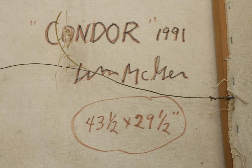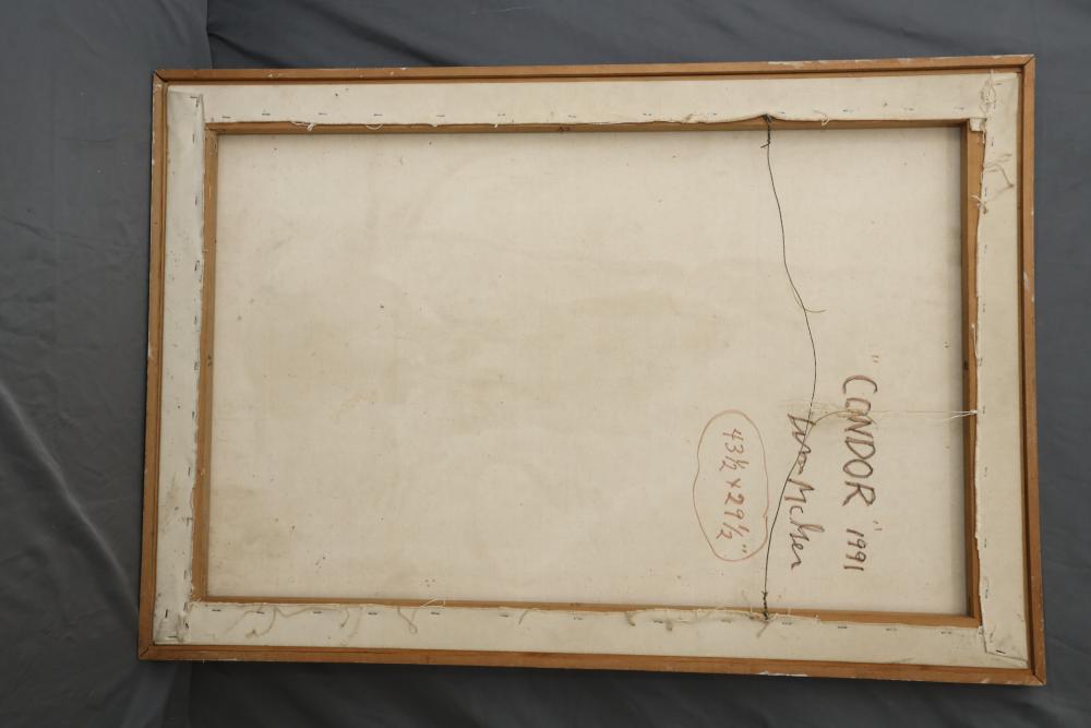 Oil on canvas framed. Title and signature written on back "Condor 1991 William McGee". 43 1/2"x29 1/2". Pickup only.