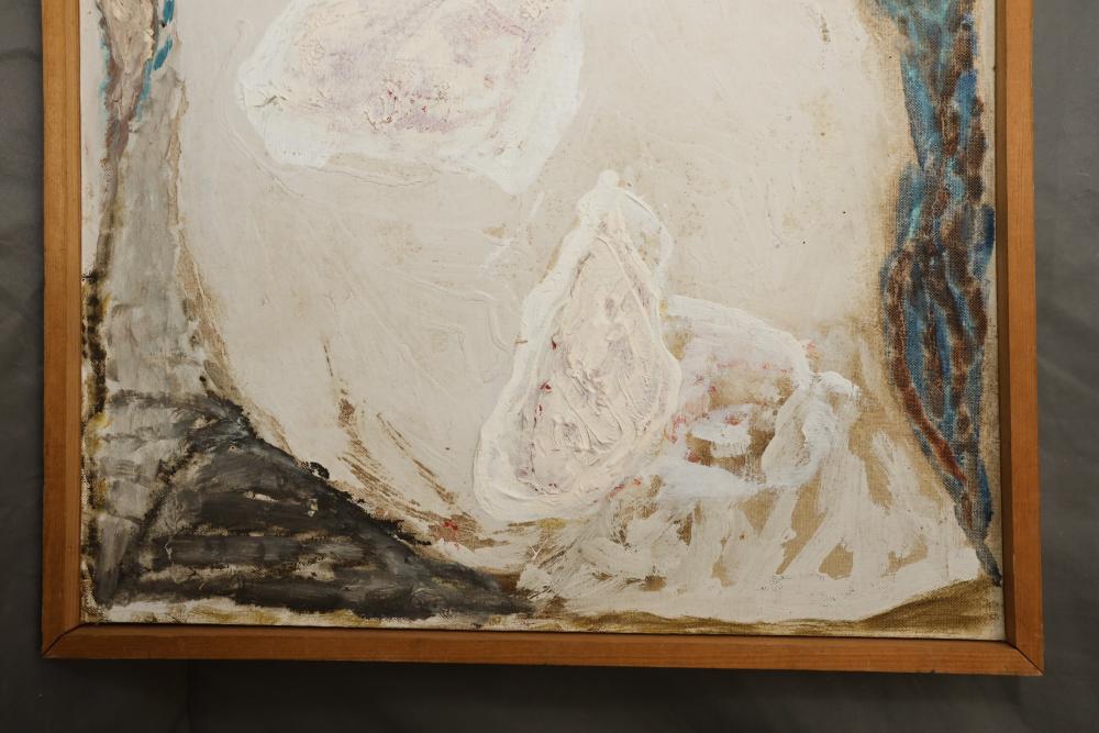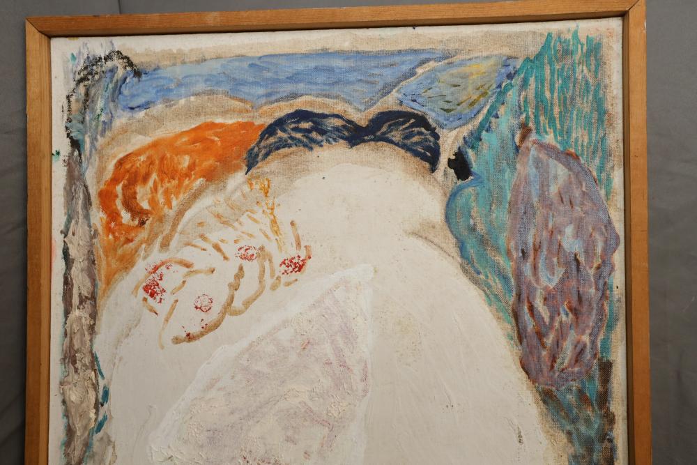 Items includes artwork: Oil on framed canvas, abstract art. Title on back "Night Cometh"; Oil on canvas, abstract art. Title on back "Far Edge". Signature on front appears to read "Syd Weinstein"; Oil on Canvas, abstract herd of horses. Signed in middle of painting. Written on back "Les Affectueux - II 1998"; Oil on canvas framed. Aquatic ship scene; Color etching and aquatint on paper. Titled "Sound of a Forest Brook" Signed lower right " Karl Schrag 86' " numbered 7/40; Print on paper framed. Signed "Amen" in lower right corner. Lower left reads "AP The City" ; Mixed Media Collage on paper. Signed lower left corner "William McGee 1989" Title "By the Sea"; Two framed Egyptian prints on Papyrus. "Nefertari and Hathor" and "Ramsess II Moving into Battle" and much more! Items are located in Pleasant Valley, NY.