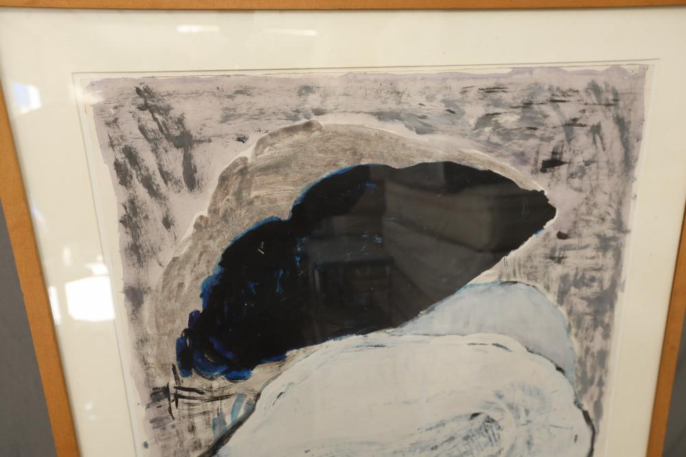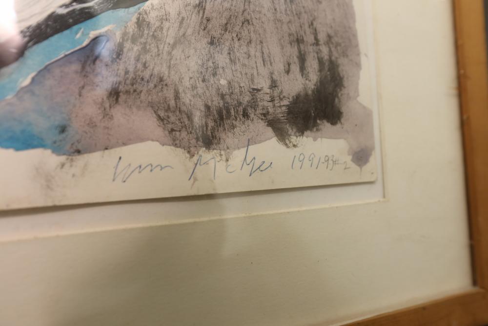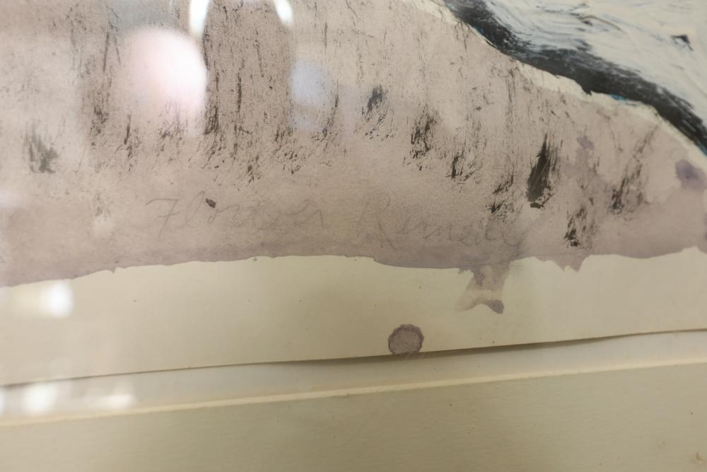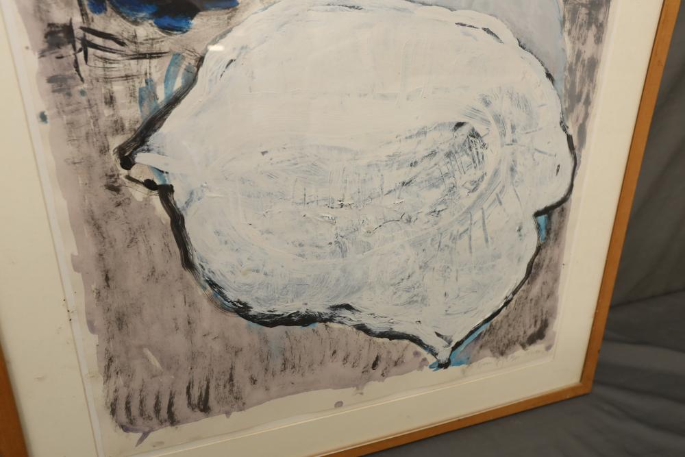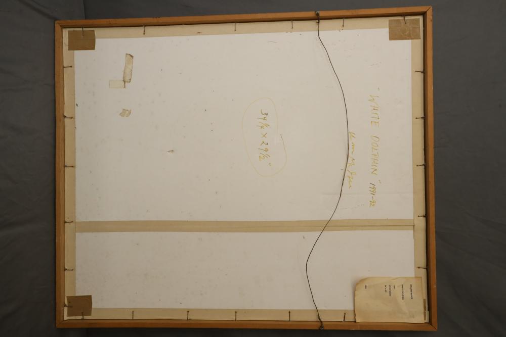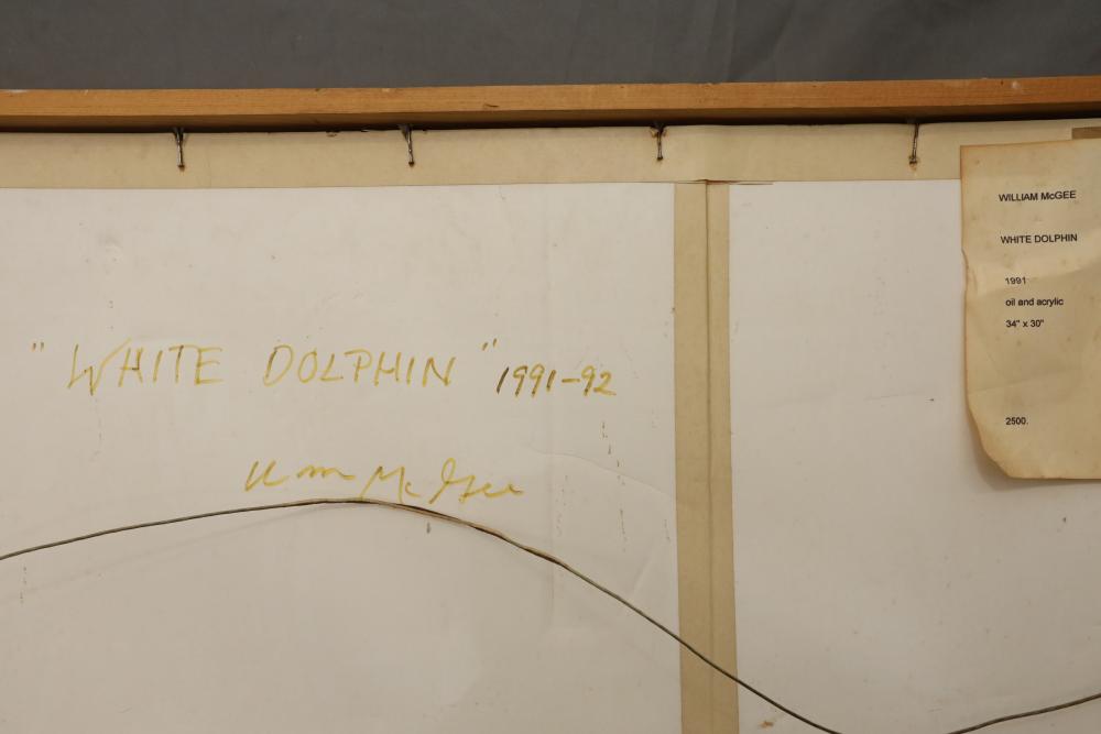 Oil and acrylic on paper framed. Signed "William McGee 1991-93 #2" Title on back "White Dolphin" 34 1/4"x29 1/2". Pickup only.
