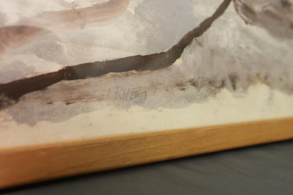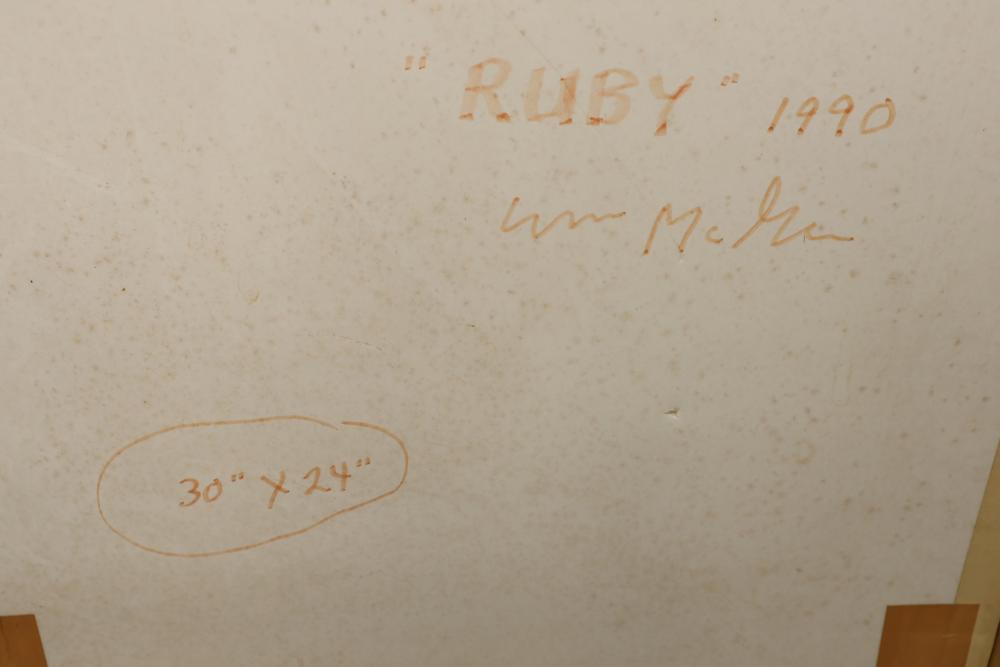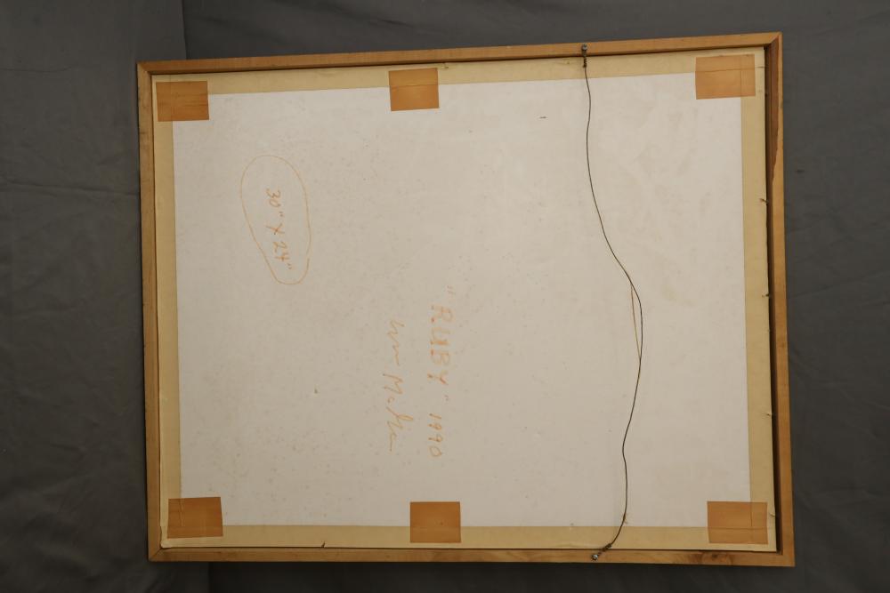 Oil on Paper framed. Signed "William McGee March 1990" Title on back "Ruby" 30"x24"'. Pickup only.