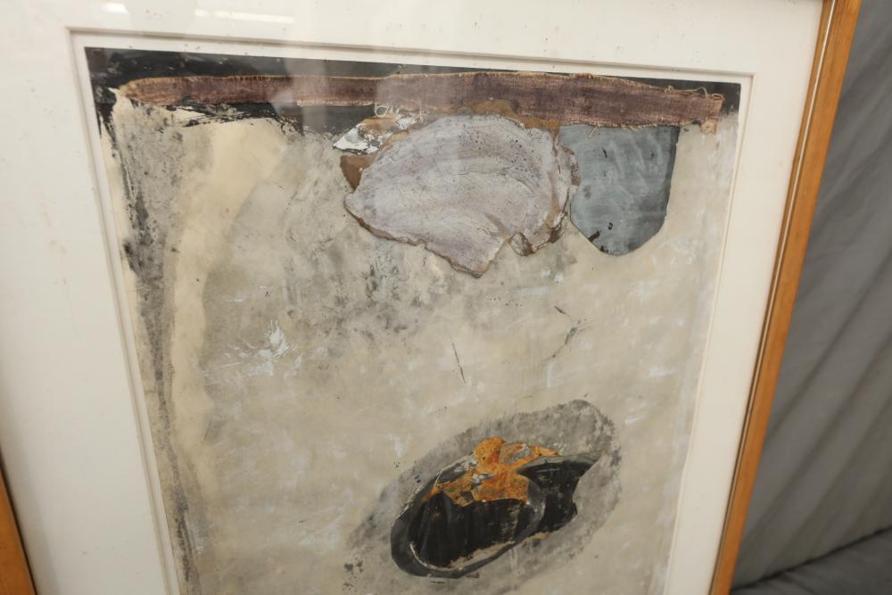 Items includes artwork: Oil on framed canvas, abstract art. Title on back "Night Cometh"; Oil on canvas, abstract art. Title on back "Far Edge". Signature on front appears to read "Syd Weinstein"; Oil on Canvas, abstract herd of horses. Signed in middle of painting. Written on back "Les Affectueux - II 1998"; Oil on canvas framed. Aquatic ship scene; Color etching and aquatint on paper. Titled "Sound of a Forest Brook" Signed lower right " Karl Schrag 86' " numbered 7/40; Print on paper framed. Signed "Amen" in lower right corner. Lower left reads "AP The City" ; Mixed Media Collage on paper. Signed lower left corner "William McGee 1989" Title "By the Sea"; Two framed Egyptian prints on Papyrus. "Nefertari and Hathor" and "Ramsess II Moving into Battle" and much more! Items are located in Pleasant Valley, NY.