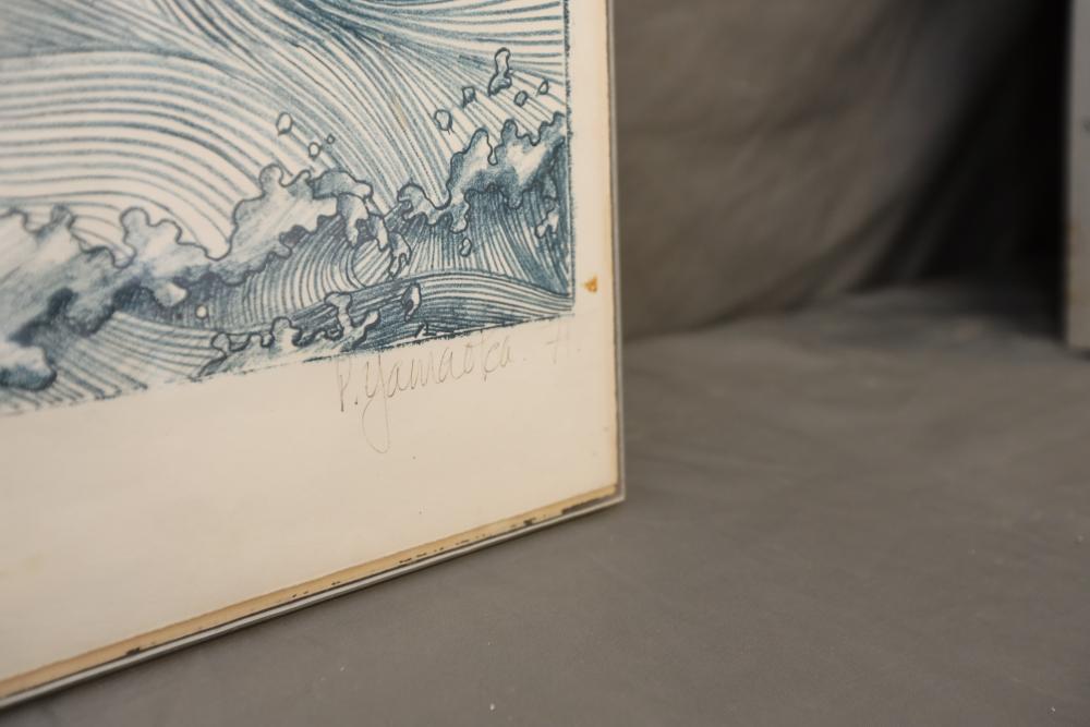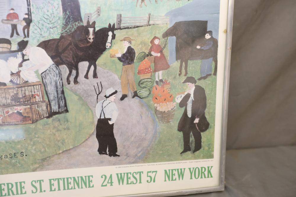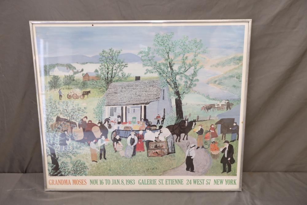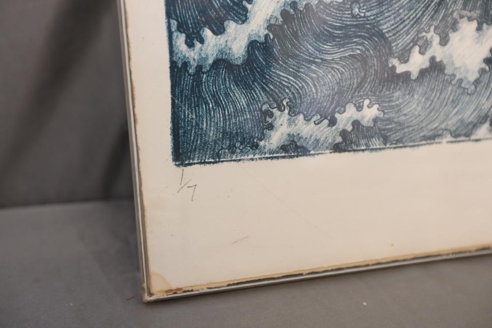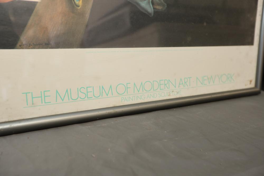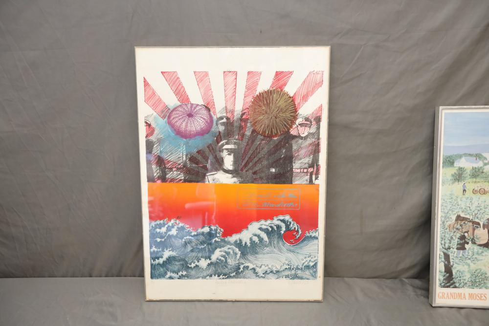 Items includes artwork: Oil on framed canvas, abstract art. Title on back "Night Cometh"; Oil on canvas, abstract art. Title on back "Far Edge". Signature on front appears to read "Syd Weinstein"; Oil on Canvas, abstract herd of horses. Signed in middle of painting. Written on back "Les Affectueux - II 1998"; Oil on canvas framed. Aquatic ship scene; Color etching and aquatint on paper. Titled "Sound of a Forest Brook" Signed lower right " Karl Schrag 86' " numbered 7/40; Print on paper framed. Signed "Amen" in lower right corner. Lower left reads "AP The City" ; Mixed Media Collage on paper. Signed lower left corner "William McGee 1989" Title "By the Sea"; Two framed Egyptian prints on Papyrus. "Nefertari and Hathor" and "Ramsess II Moving into Battle" and much more! Items are located in Pleasant Valley, NY.