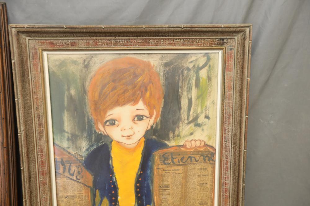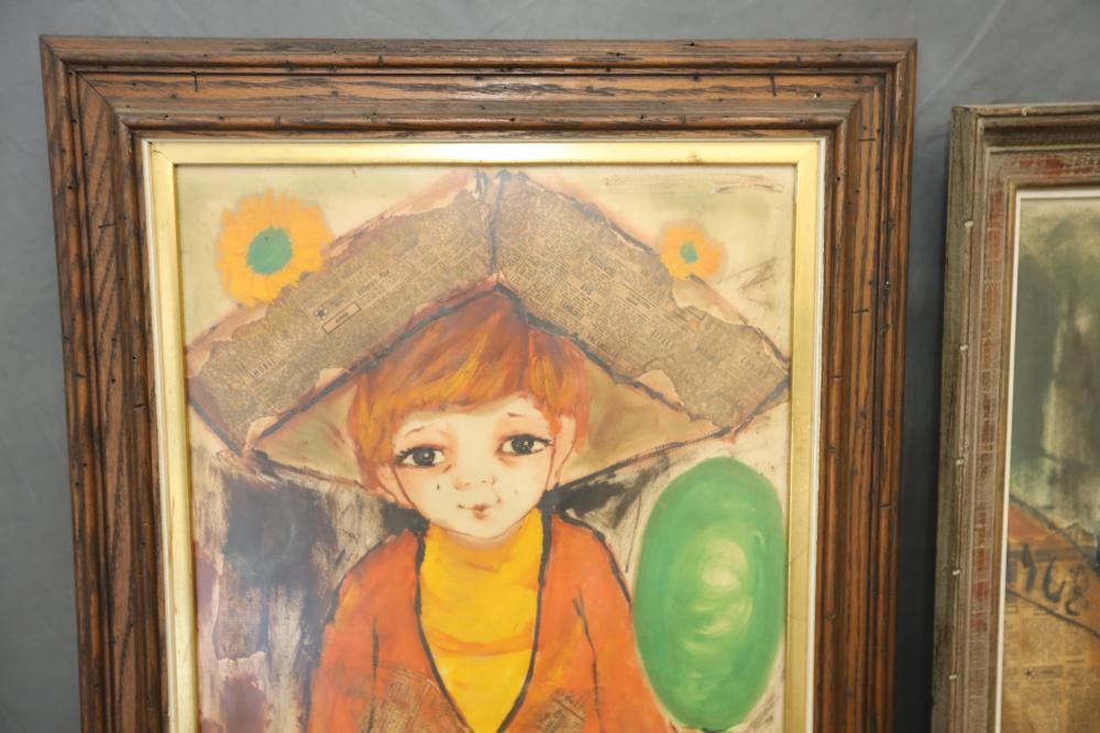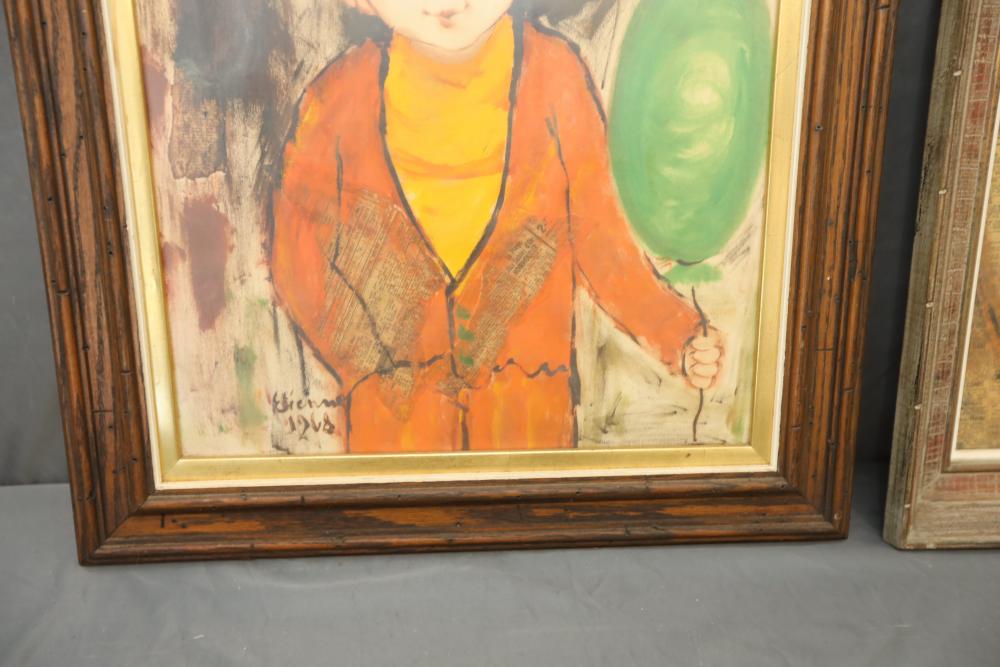 Items includes artwork: Oil on framed canvas, abstract art. Title on back "Night Cometh"; Oil on canvas, abstract art. Title on back "Far Edge". Signature on front appears to read "Syd Weinstein"; Oil on Canvas, abstract herd of horses. Signed in middle of painting. Written on back "Les Affectueux - II 1998"; Oil on canvas framed. Aquatic ship scene; Color etching and aquatint on paper. Titled "Sound of a Forest Brook" Signed lower right " Karl Schrag 86' " numbered 7/40; Print on paper framed. Signed "Amen" in lower right corner. Lower left reads "AP The City" ; Mixed Media Collage on paper. Signed lower left corner "William McGee 1989" Title "By the Sea"; Two framed Egyptian prints on Papyrus. "Nefertari and Hathor" and "Ramsess II Moving into Battle" and much more! Items are located in Pleasant Valley, NY.