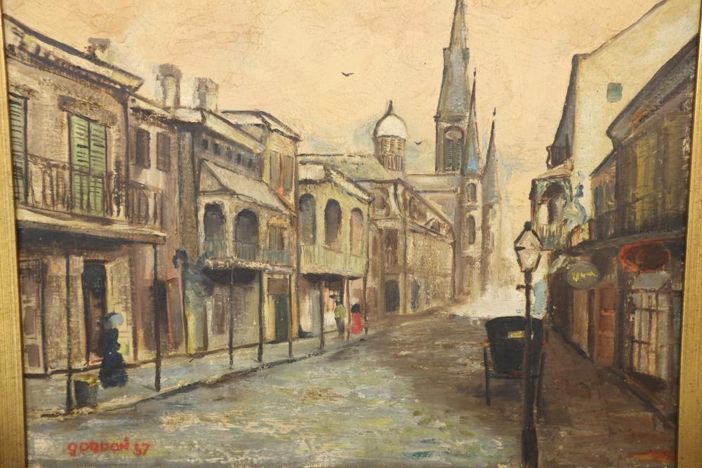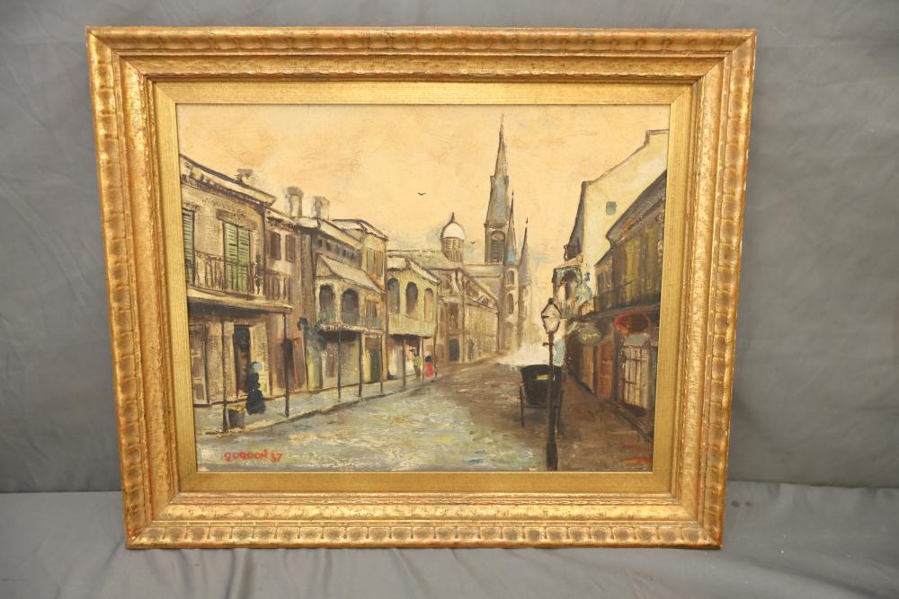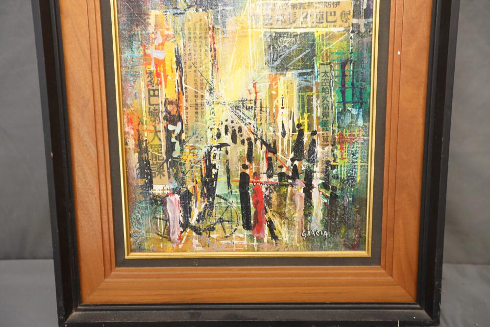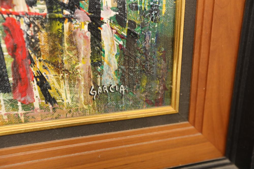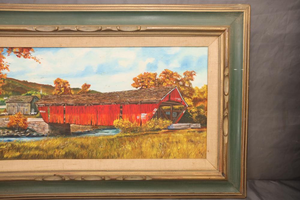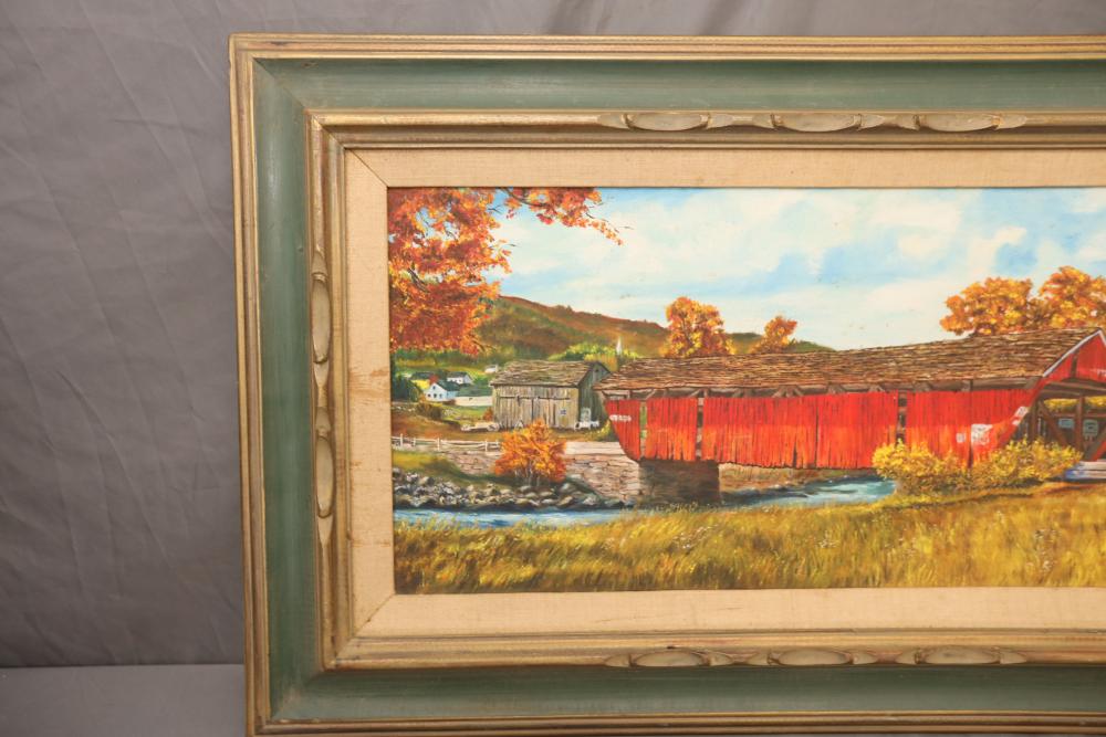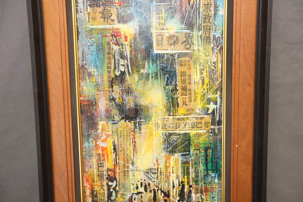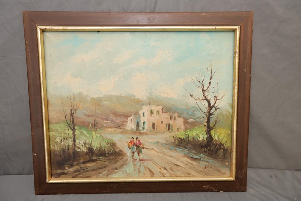 Items includes artwork: Oil on framed canvas, abstract art. Title on back "Night Cometh"; Oil on canvas, abstract art. Title on back "Far Edge". Signature on front appears to read "Syd Weinstein"; Oil on Canvas, abstract herd of horses. Signed in middle of painting. Written on back "Les Affectueux - II 1998"; Oil on canvas framed. Aquatic ship scene; Color etching and aquatint on paper. Titled "Sound of a Forest Brook" Signed lower right " Karl Schrag 86' " numbered 7/40; Print on paper framed. Signed "Amen" in lower right corner. Lower left reads "AP The City" ; Mixed Media Collage on paper. Signed lower left corner "William McGee 1989" Title "By the Sea"; Two framed Egyptian prints on Papyrus. "Nefertari and Hathor" and "Ramsess II Moving into Battle" and much more! Items are located in Pleasant Valley, NY.