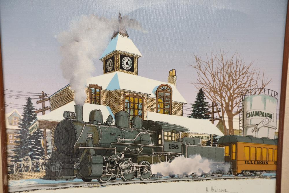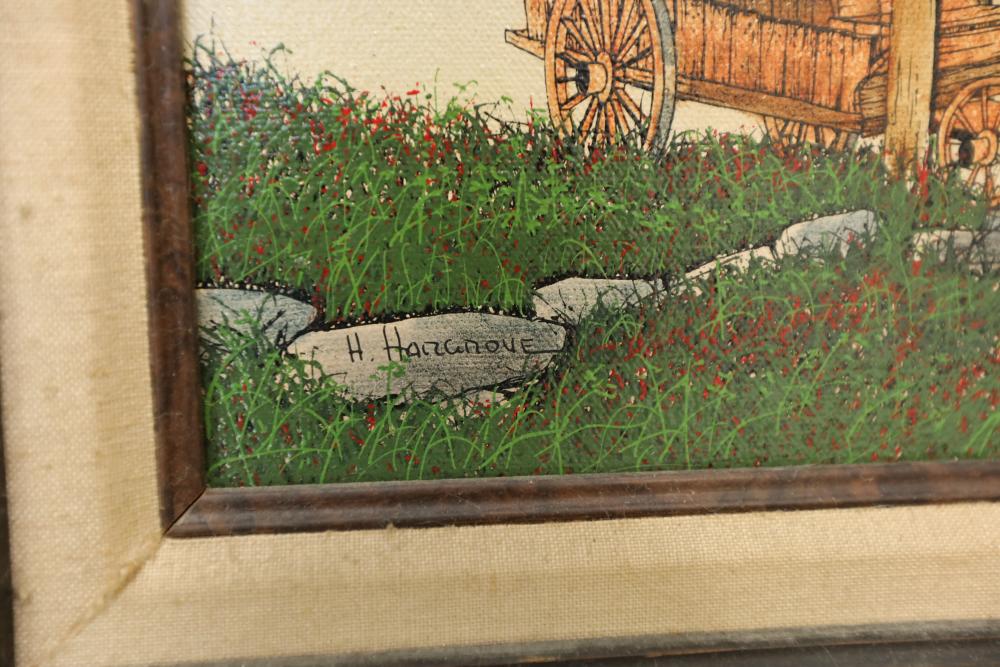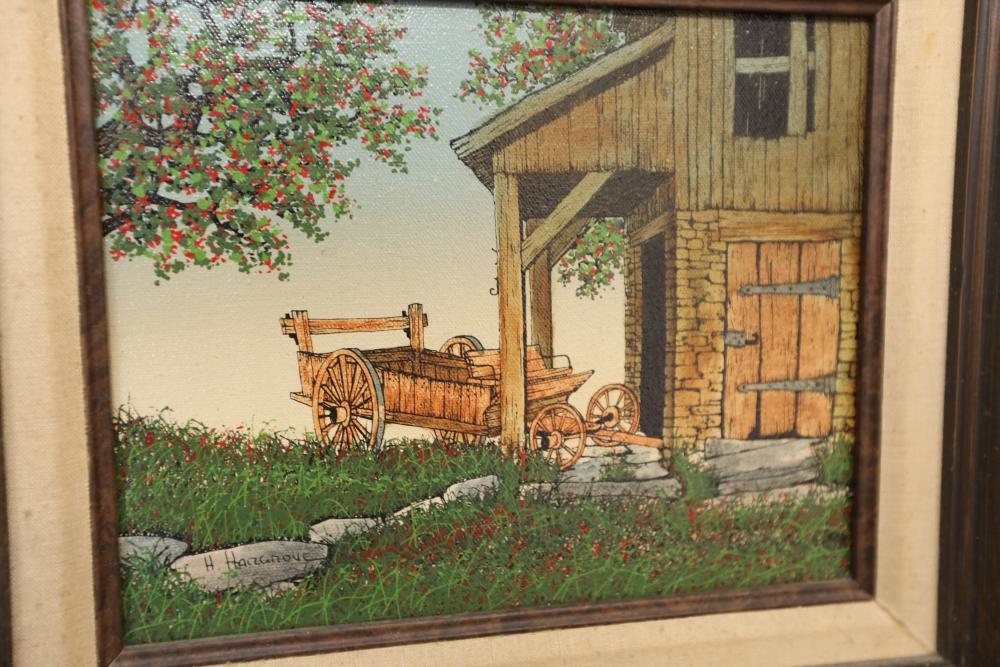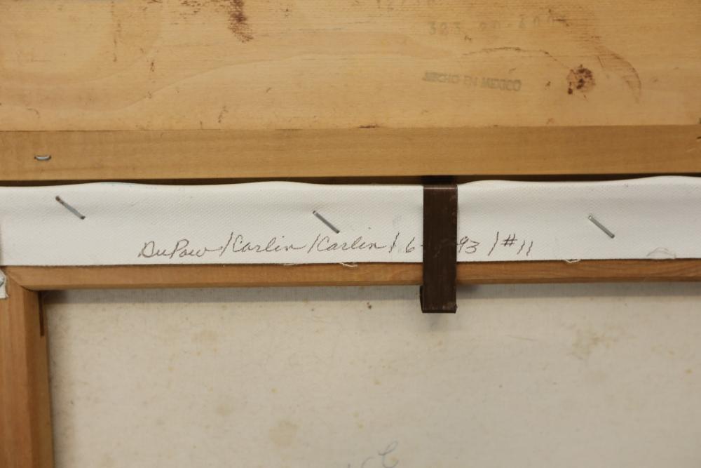 Items includes artwork: Oil on framed canvas, abstract art. Title on back "Night Cometh"; Oil on canvas, abstract art. Title on back "Far Edge". Signature on front appears to read "Syd Weinstein"; Oil on Canvas, abstract herd of horses. Signed in middle of painting. Written on back "Les Affectueux - II 1998"; Oil on canvas framed. Aquatic ship scene; Color etching and aquatint on paper. Titled "Sound of a Forest Brook" Signed lower right " Karl Schrag 86' " numbered 7/40; Print on paper framed. Signed "Amen" in lower right corner. Lower left reads "AP The City" ; Mixed Media Collage on paper. Signed lower left corner "William McGee 1989" Title "By the Sea"; Two framed Egyptian prints on Papyrus. "Nefertari and Hathor" and "Ramsess II Moving into Battle" and much more! Items are located in Pleasant Valley, NY.