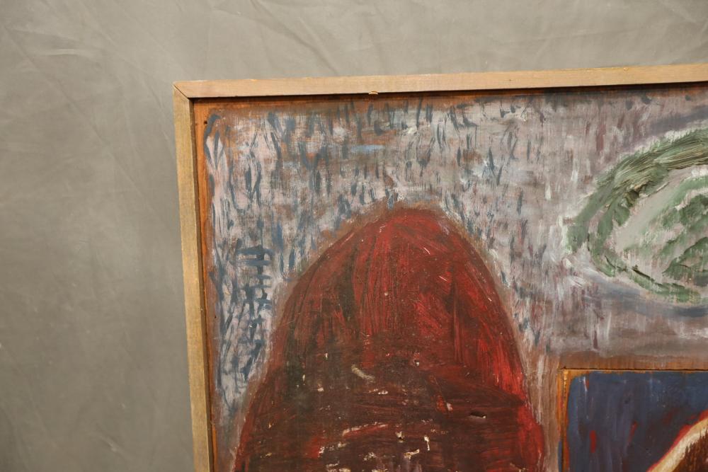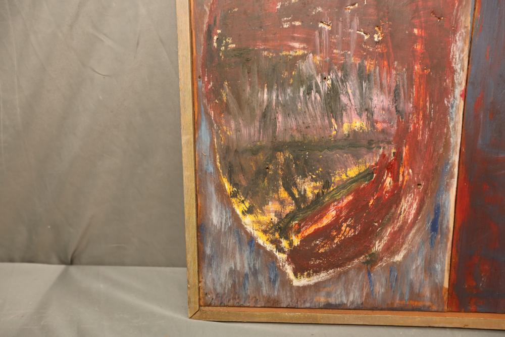 Items includes artwork: Oil on framed canvas, abstract art. Title on back "Night Cometh"; Oil on canvas, abstract art. Title on back "Far Edge". Signature on front appears to read "Syd Weinstein"; Oil on Canvas, abstract herd of horses. Signed in middle of painting. Written on back "Les Affectueux - II 1998"; Oil on canvas framed. Aquatic ship scene; Color etching and aquatint on paper. Titled "Sound of a Forest Brook" Signed lower right " Karl Schrag 86' " numbered 7/40; Print on paper framed. Signed "Amen" in lower right corner. Lower left reads "AP The City" ; Mixed Media Collage on paper. Signed lower left corner "William McGee 1989" Title "By the Sea"; Two framed Egyptian prints on Papyrus. "Nefertari and Hathor" and "Ramsess II Moving into Battle" and much more! Items are located in Pleasant Valley, NY.